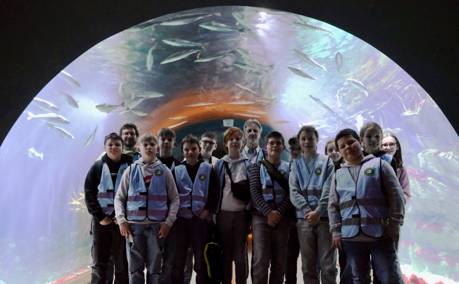 Auch in diesem Jahr stand für die Petrijünger der Fleesenseeschule eine Exkursion ins Ozeaneum auf dem Plan. Nach einem kurzen Briefing in der Aula und dem Verteilen der Lunchpakete, die wieder durch den Angelverein „Petri Heil“ Nossentiner Hütte e.V. gesponsert wurden, verließ die Gruppe des Projektes „Angeln macht Schule“ pünktlich um 7,45 Uhr die Bushaltestelle vor der Schule und machte sich auf den Weg nach Stralsund.