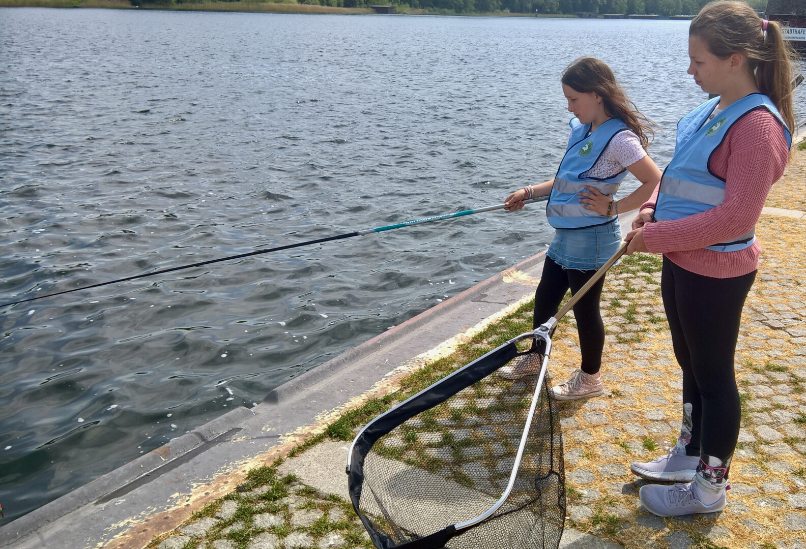 Am Wasser angekommen, wurden die Angelruten von den vier Teams schnell zusammengebaut und mit den Ködern ins Wasser gebracht. Es dauerte auch nicht lange, und erste Fangerfolge stellten sich ein. Die jungen Angler konnten unter Anleitung ihrer Lehrer Torsten Krüger und Martin Pianka ihre Fänge mit dem Kescher landen und fachgerecht versorgen. Die im Unterricht erworbenen Kenntnisse wurden also in die Praxis umgesetzt.
