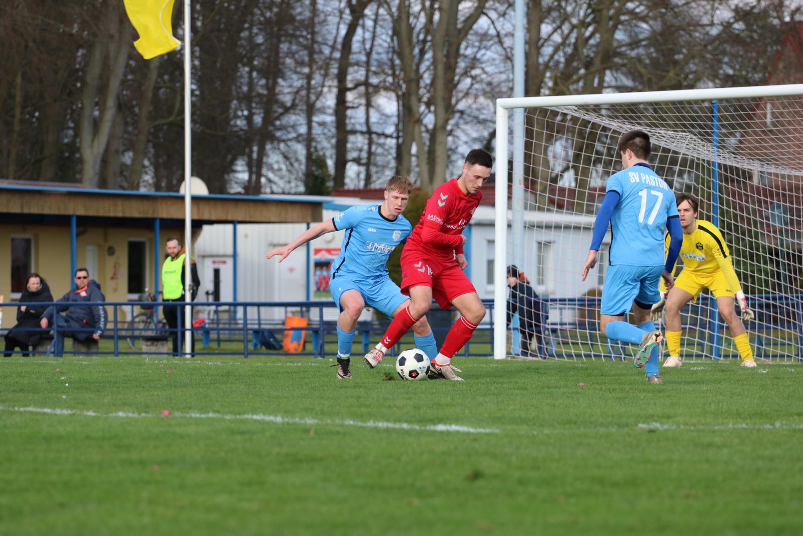 Erstes Punktspiel der Rückrunde in der Verbandsliga für den Malchower SV am Wochenende:Der SV Pastow war zu Gast. Die Pastower begannen sehr selbstbewusst, die Heimmannschaft musste sich erst sortieren, aber bereits in der 4. Minute schlugen die Gäste das erste Mal zu. Sie konnten durch ihre Nummer 32, Carlo Lange, die 0:1-Führung erzielen. Das war wie ein Startschuss für die Malchower, denn jetzt spielten sie konzentriert nach vorne und konnten sich einige gute Torchancen erarbeiten.