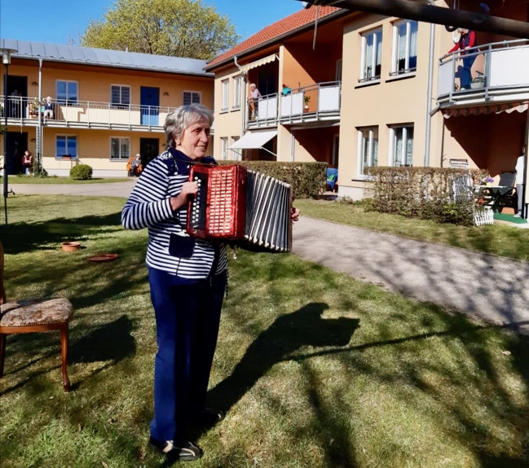 Ein großes Dankeschön geht an Hilde Meyer aus Malchow. Sie rückte gestern beim Betreuten Wohnen im Biestorfer Weg mit ihrer Ziehharmonika an und sang auf dem Innenhof der Anlage gemeinsam mit den Bewohnern, die auf ihren Balkons standen.