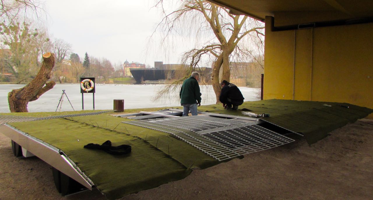 Nun haben die Lachmöwen wieder gut Lachen und genügend Platz auf dem Herrensee. Die Instandsetzung der alten Brutinsel ist abgeschlossen. Die Firma Technus KG aus Teterow übernahm die aufwendige Sanierung der künstlichen Insel. Mitarbeiter des Müritzeums bestückten die Fläche mit Naturmaterial, den Rest machen die neuen Bewohner nun selbst. Morgen früh soll die neue Brutinsel an ihren Platz auf dem Herrensee gezogen werden.