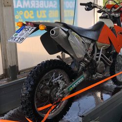 - eine orangefarbene KTM mit einem weißen Tank im Wert von ca. 2.000 Euro