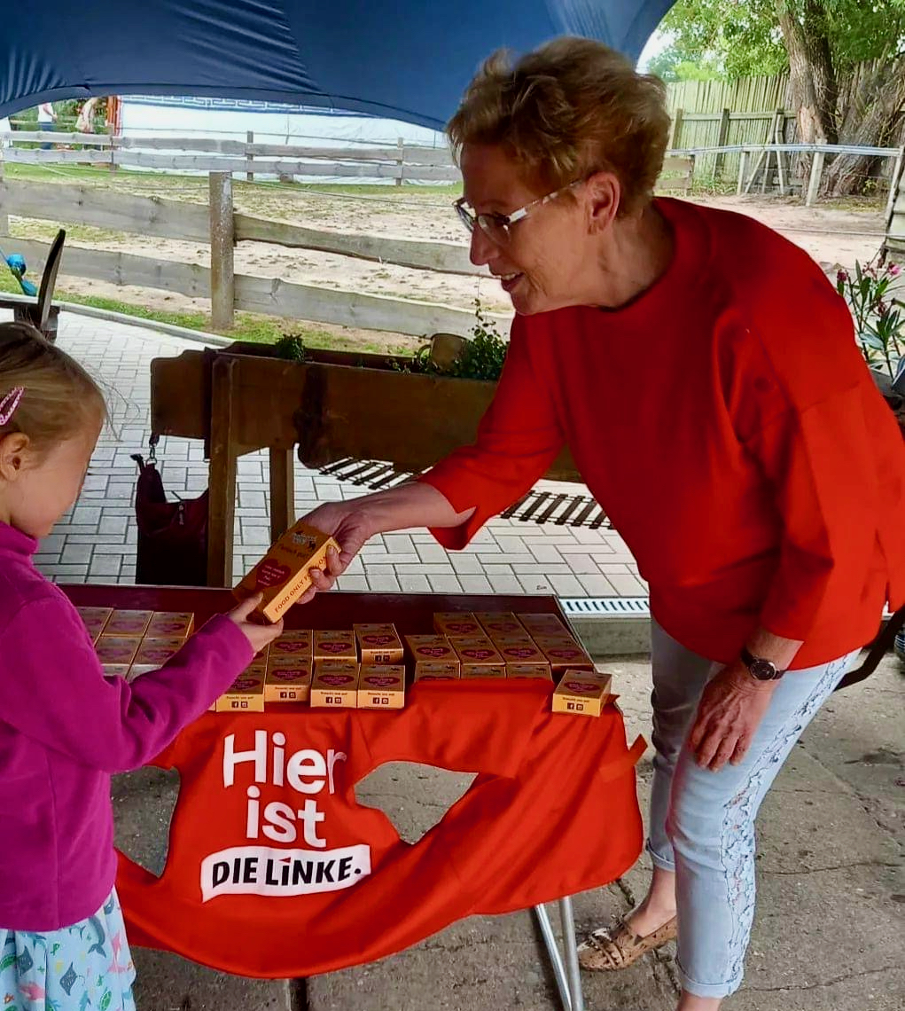 Ich finde den Artikel etwas zu scharf. Es drängt sich der Gedanke auf, dass hier nur kritisiert wird, weil es „Die Linke“ ist. Die unerträglich aufdringliche Werbung, das Bedrängen von Menschen und zum Kauf nötigen – bis in die privatesten Bereiche des Lebens, ist eine Erscheinung unseres herrschenden politischen Systems. Sei’s drum. Hört sowieso keiner hin. Die Linke macht einfach nur mit. Sie stehen da mit einem Großaufgebot, also etlichen Autos, Plakaten, Transparenten, Luftballons, Musik, Tribüne, Sicherheitsleuten… Praktisch ein kleiner Parteitag oder ein Linken – Volksfest…STOP. Nein, da steht eine einzige kleine Frau und schenkt Kindern Futterpäckchen für den Zoobesuch! Ich bin im Zweifel, ob das DIE Aufregung wert ist. Wer hat so viel Angst vor einer Partei, die seit Jahren nichts Rechtes mehr zustande bringt??