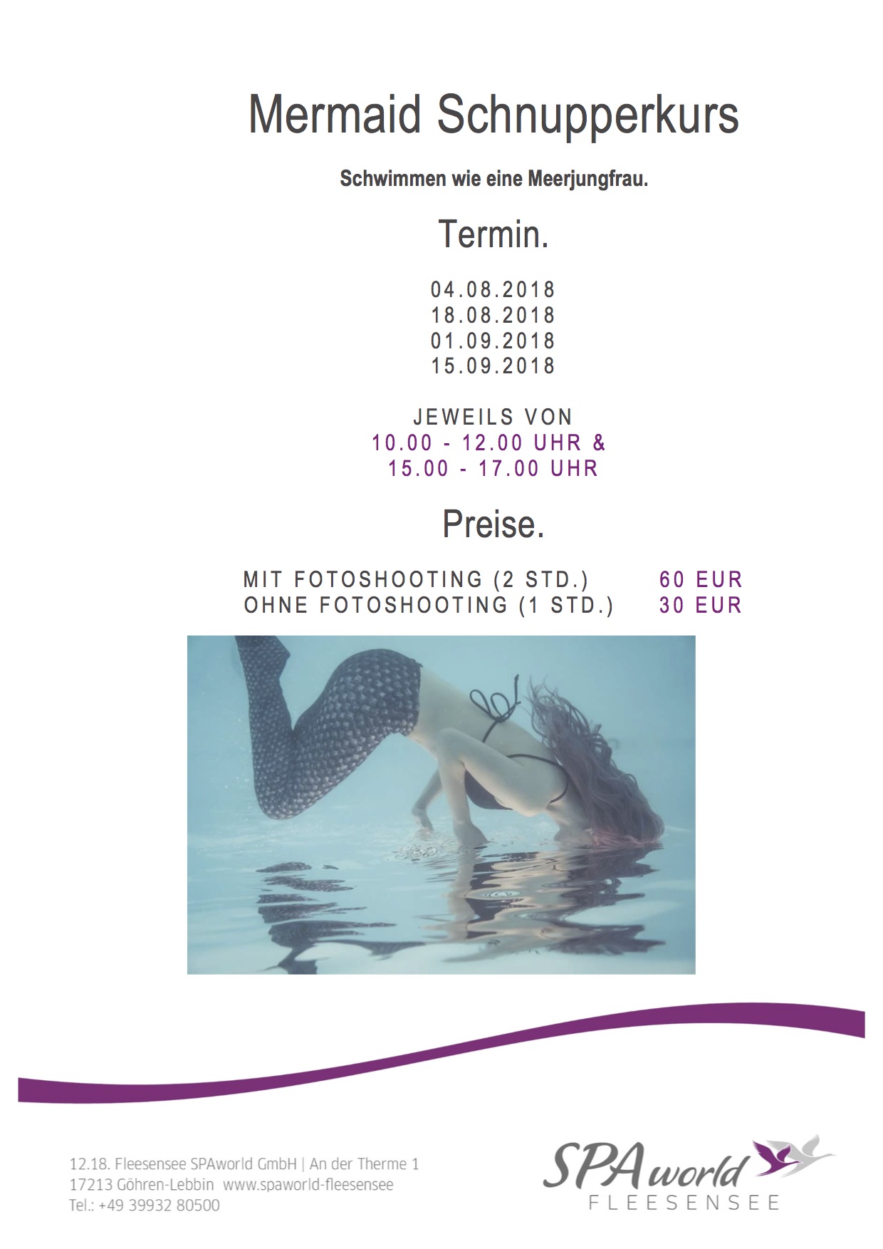 In der SPA world Fleesensee sind neue Termine geplant:
