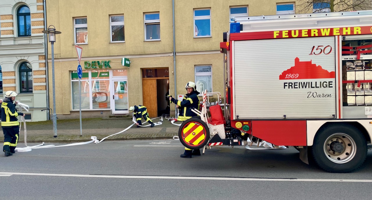 Feuerwehreinsatz heute Nachmittag in der Warener Bahnhofstraße: Aus einer Wohnung drang Rauch, der Mieter öffnete aber nicht. Wie sich während des Einsatzes herausstellte, stand auf seinem Herd ein Topf wohl schon viel zu lange, der Mann selbst schlief tief und fest.