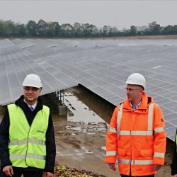 Sollte das Beispiel Schule machen? Kiesgruben sind als Tagebaue im Allgemeinen nicht so gern gesehen, aber nötig. Viele kritisieren, dass die Lkw die Straßen kaputt fahren. Dabei können solche Tagebaue hinterher wahre Naturparadiese werden, beispielsweise wenn daraus nach Abschluss Badeseen geformt werden. Einen ganz anderen Weg haben der Energieversorger Wemag (Schwerin) und die Verantwortlichen in Zietlitz nahe Linstow an der A19 eingeschlagen: Dort „wächst“ gerade in einer Kiesgrube der nach Leistung stärkste Solarpark, wie Energieminister Christian Pegel jetzt bei einem Besuch bemerkte.