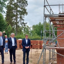 Wenn das alles fertig ist, ist aber noch nicht Schluss. Wir haben noch mindestens bis 2030 in Neustrelitz zu tun, meinte Tasler. So soll das Hofmarschallhaus saniert werden, danach das Carolinenpalais, das genau gegenüber der Orangerie steht. Und schon 2023 soll auch die Erhaltung und Sicherung des Schlosskellers beginnen. Dort auf dem Schlosberg will die Stadt zunächst wenigstens einen Turm errichten. Dieser soll weitgehend dem Turm entsprechen, der zum Schloss gehörte, das nach 1945 abgebrannt war und dessen Ruinen später abgetragen wurden. Seither fehlt dem gesamten Stadtensemble ein wichtiger Orientierungspunkt.