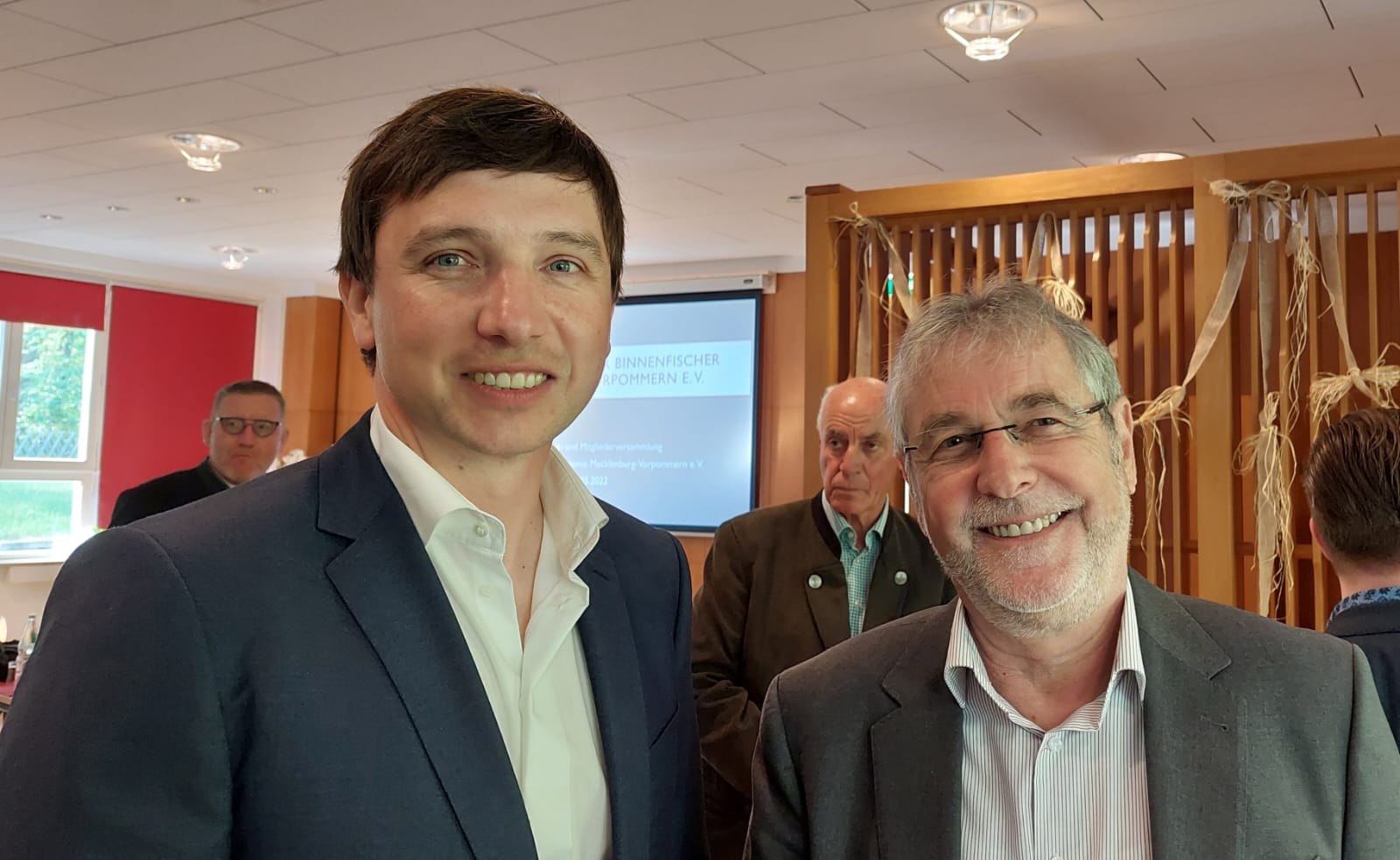Wer auf den Binnengewässern in Mecklenburg und Vorpommern angelt, soll auch in Zukunft möglichst viele Fischarten fangen dürfen – darunter auch den Aal. Das haben die Binnenfischer und der Anglerverband MV jetzt mit Landesfischereiminister Till Backhaus (SPD) abgesprochen. Auf ihrem ersten Treffen nach den Corona-Einschränkungen haben sich etwa 60 Fischer, Angler und Fischerei-Fachleute am Montag in der Europäischen Akademie in Waren an der Müritz getroffen. Dabei kam es auch zu einer Art Wachablösung. Der langjährige Vorsitzende des Binnenfischereiverbandes Ulrich Paetsch, früher Prokurist bei den Müritzfischern – wurde offiziell verabschiedet. Der 70-Jährige übergab „das Zepter“ an den 39-jährige Martin Bork aus Wesenberg (Foto). Der junge Fischereifachmann kann zumindest auf ein sicheres Fundament aufbauen, wie bei der Jahrestagung deutlich wurde.