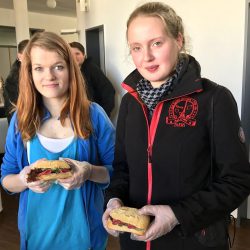 Doch langweilig wurde es bei den Backstuben wahrlich nicht. Wer wollte, konnte selbst Streuselschnecken belegen und backen oder aber auch Brötchen belegen. Aber nicht irgendwie belegen, sondern so, wie es in den Filialen des Unternehmens gemacht wird. Und da gibt es einiges zu beachten.