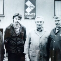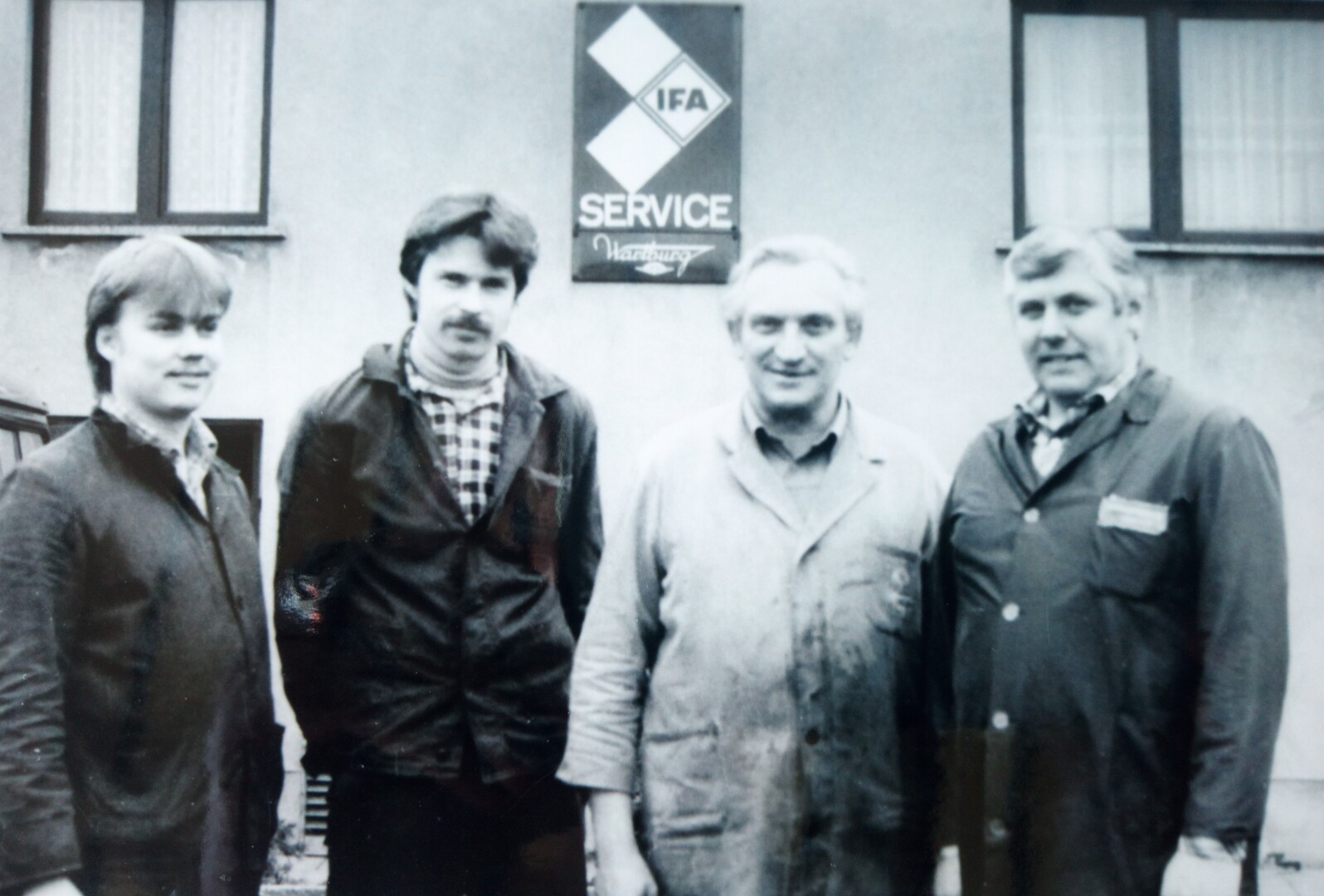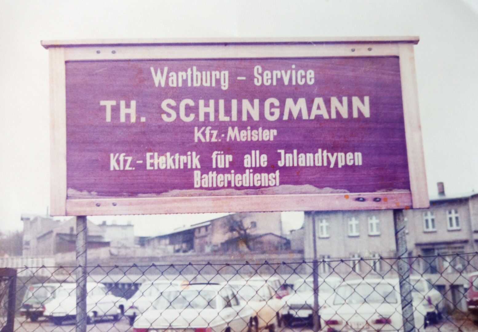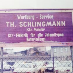 Die Bauarbeiten für die kleine Firma in der Papenbergstraße wurden seinerzeit in Eigenleistung durchgeführt – aus einem alten Stallgebäude wurde eine KfZ-Werkstatt. Und dann kam der Tag der Eröffnung: Theo, wie ihn viele in Waren einfach nur nennen, wartete auf Kunden und hatte schon Angst, dass niemand kommt. Doch der erste Kunde ließ nicht lange auf sich warten – es war Hans-Jürgen Pingel, vielen als Musiker und späterer Gastronom ein Begriff. Erste Mitarbeiter waren 1978 übrigens Jochen Schröder, Georg Müller, Dieter Dreyer und natürlich Waltraut Schlingmann. Schnell sprach sich herum, dass man in Schlingmanns Wartburg-Werkstatt immer alles versucht hat, um die häufig in die Jahre gekommenen Wagen – auch anderer Marken – wieder flott zu kriegen. Theo war bekannt dafür, dass er Ersatzteile, die wie Goldstaub waren, organisieren konnte. Dafür packte er sich auch schon mal frisch geräucherten Müritz-Aal in den Kofferraum, fuhr Richtung Süden und kam mit den gewünschten Teilen zurück…