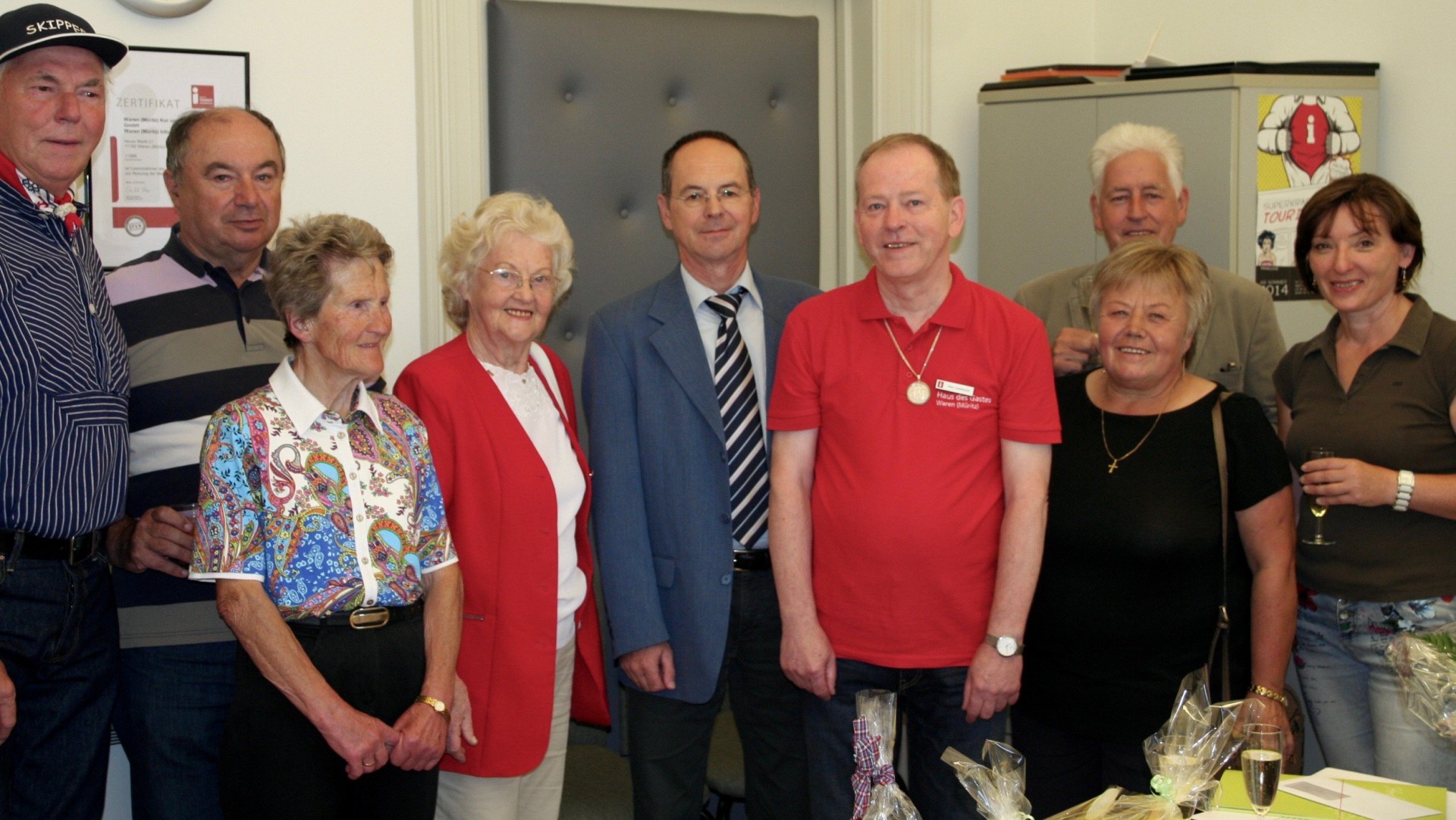 Großer Bahnhof heute in der Waren (Müritz)-Information: Die vielen Glückwünsche galten einem Mann: Klaus Lambrecht, von vielen in der Stadt einfach nur „Klausi“ genannt.