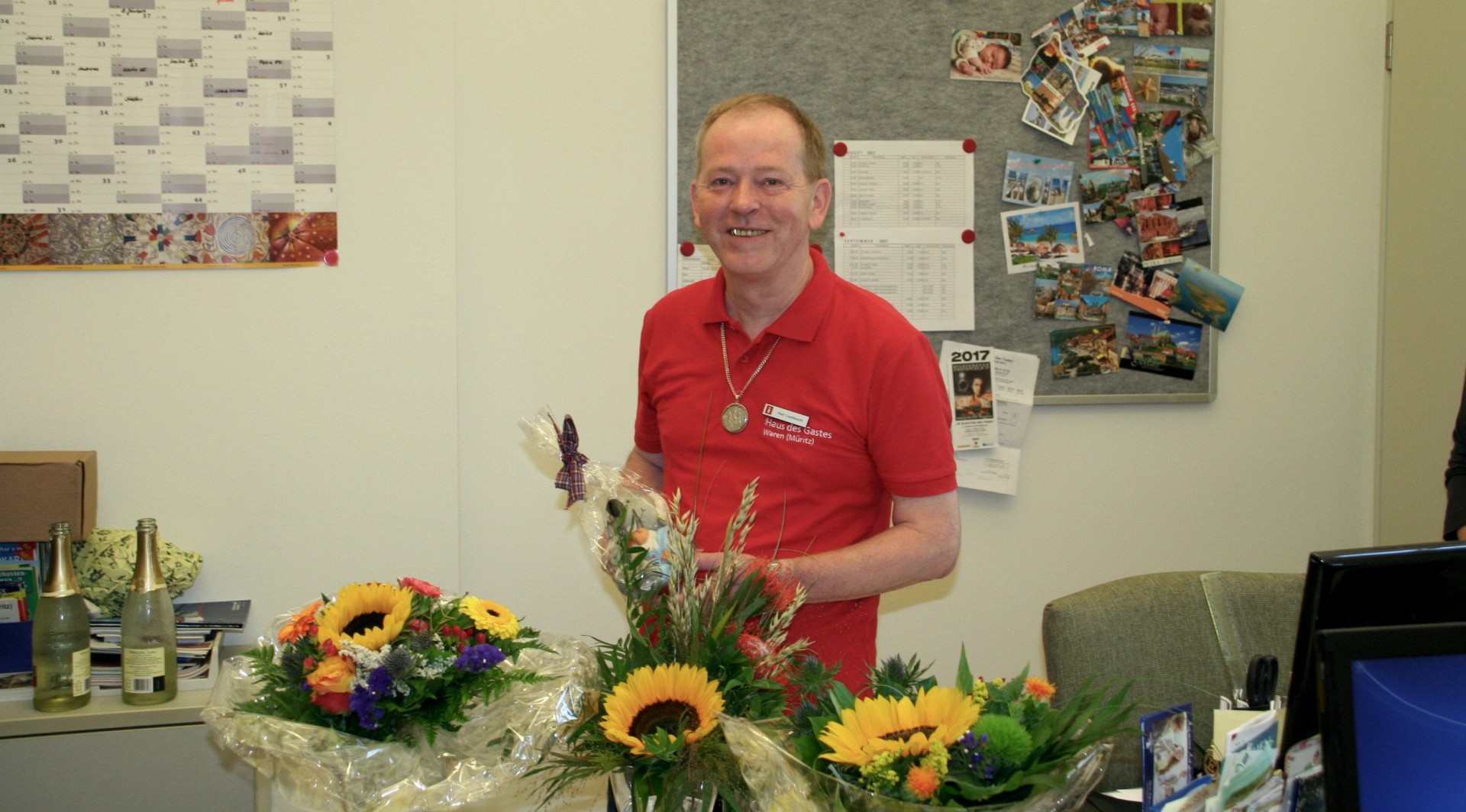 Großer Bahnhof heute in der Waren (Müritz)-Information: Die vielen Glückwünsche galten einem Mann: Klaus Lambrecht, von vielen in der Stadt einfach nur „Klausi“ genannt.