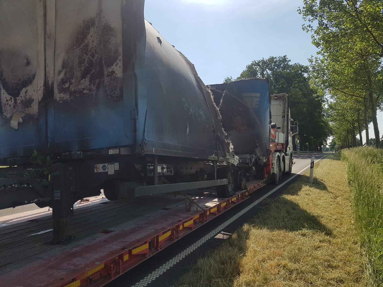 Wie ein Polizeisprecher erklärte, hatte der Lastwagen mit Anhänger große Mengen Holzspäne geladen. Das Feuer soll durch einen technischen Defekt an der Bremse oder einem Rad ausgelöst worden sein.