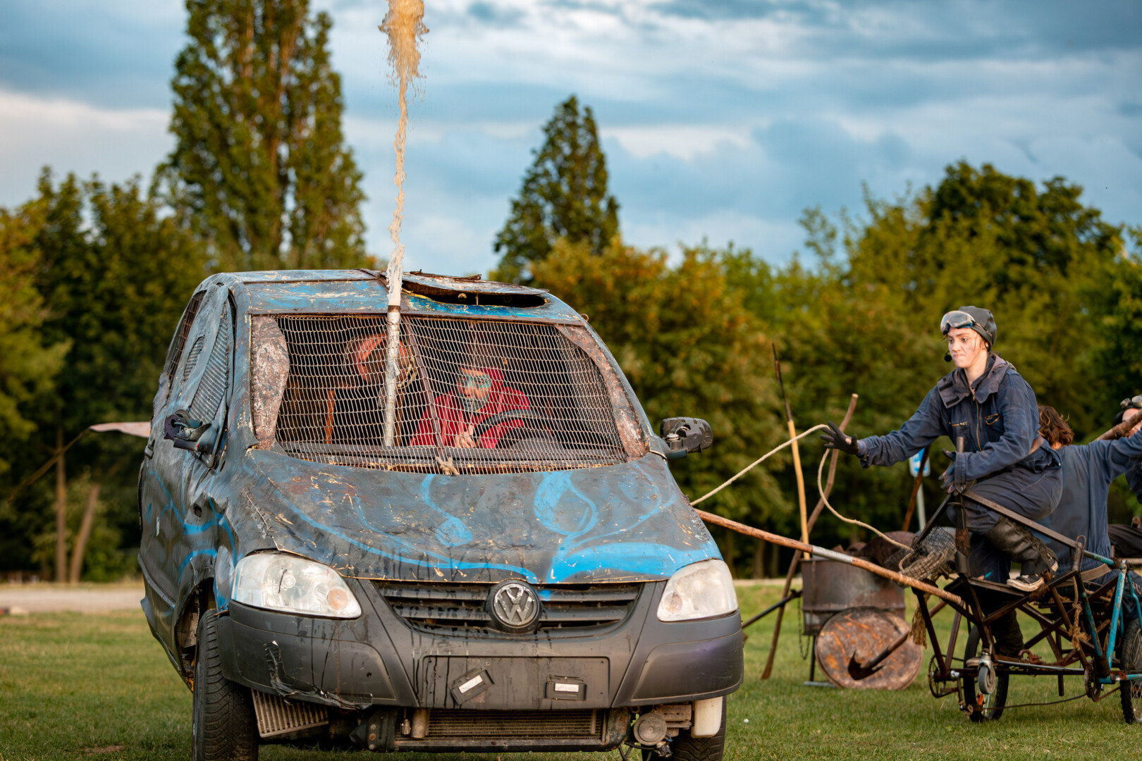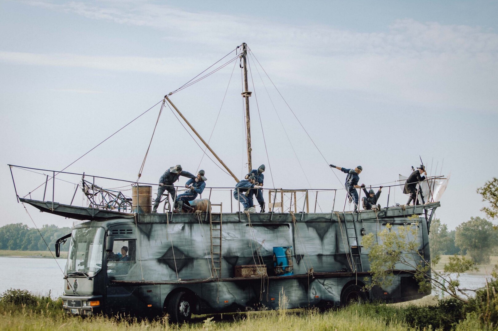 Ja, es ist irre, was am Sonnabend, 17. August, um 20 Uhr am Ufer der Domjüch auf dem Gelände der ehemaligen Landesirrenanstalt abgeht. Hier mutiert ein Linienbus zum Walfangschiff. Mit Metallschrott, Menschen und Musik erschaffen die Mitstreiter der „Freien Bühne Wendland“ eine bezaubernd brutale Welt auf See, die zum Mitreisen einlädt und die Zuschauer in die Abgründe der Menschlichkeit spähen lässt. Die „Freie Bühne Wendland“ erkundet die Rückbesinnung auf das Wandertheater durch das fahrende Volk als Gegenbewegung zur Abwanderung der Kunst in das „world wide web“. Dabei gehen die Theatermacher ein neues Wagnis aufsuchender Kunst ein: kybernetisches Theater-Spektakel nach einem Klassiker der Weltliteratur. Der Roman „Moby Dick“ wird von ihnen neu gedacht und bildstark bespielt, bis das Spektakel wieder abzieht und die Leute vor Ort mit Gischt im Haar zurücklässt. Ein bemerkenswertes Bühnenbild bietet dabei der umgebaute Theaterbus für die Doppelfunktion als „Walfang-Schiff“ sowie als „Moby Dick“.