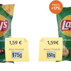 Aber auch bei Markenartikeln wie die Lay’s Chips, Dove Seife und Piasten Schokolinsen wurden in den letzten Wochen versteckt die Preise erhöht.