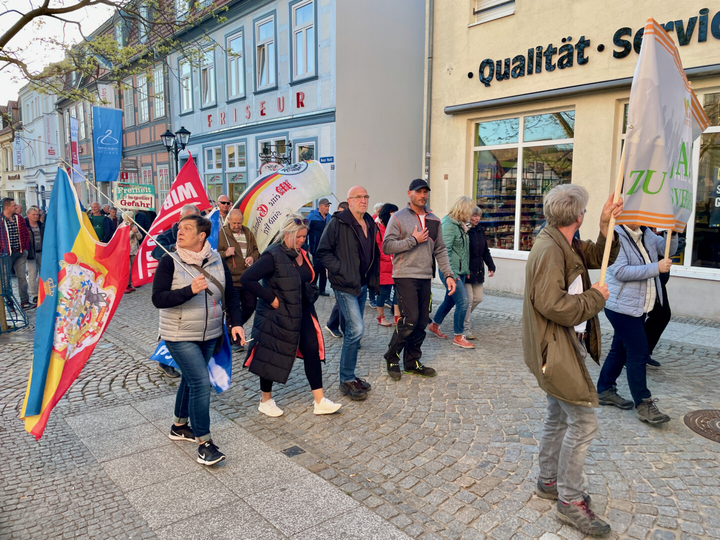 Nach dem Gedenken machten sich die Teilnehmer zu ihrem obligatorischen Zug durch Waren auf. Unüberhörbar, aber auch mit vielen ruhigen Gesprächen untereinander.