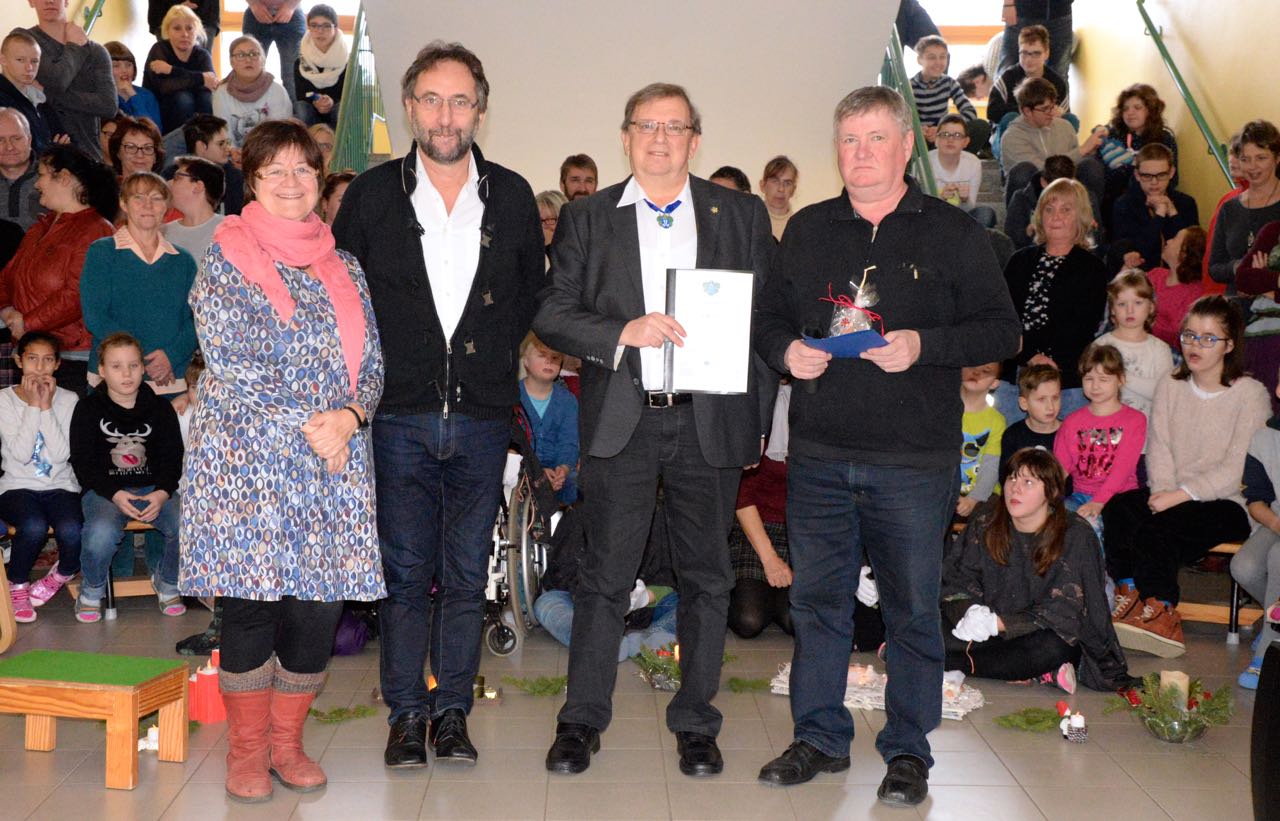 Manfred Urban, der vielen als Geschäftsführer der MMG bekannt ist, überbrachte gemeinsam mit Wolf-Dieter Ringguth und Sekretarius Dagmar Wilisch eine Morizanergabe von 1.000 Euro, für deren Einsatz Schulleiter Lothar Lotzkat bereits eine Idee hat.