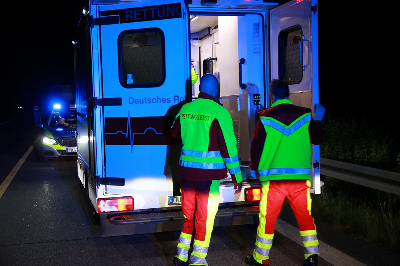 Dutzende Kraftfahrer fuhren einfach an der Unfallstelle vorbei. Mit Warnwesten versuchten die Frauen anschließend Lkw und Autos zum Anhalten zu bewegen. „Es war hier stockdunkel, der Mann schrie vor Schmerzen“, sagte uns eine Zeugin aus dem Unfallwagen. Erst Minuten später hielt der Fahrer eines Wohnwagens an und hob, zusammen mit den Frauen, die Maschine von dem schwer verletzten Motorradfahrer.