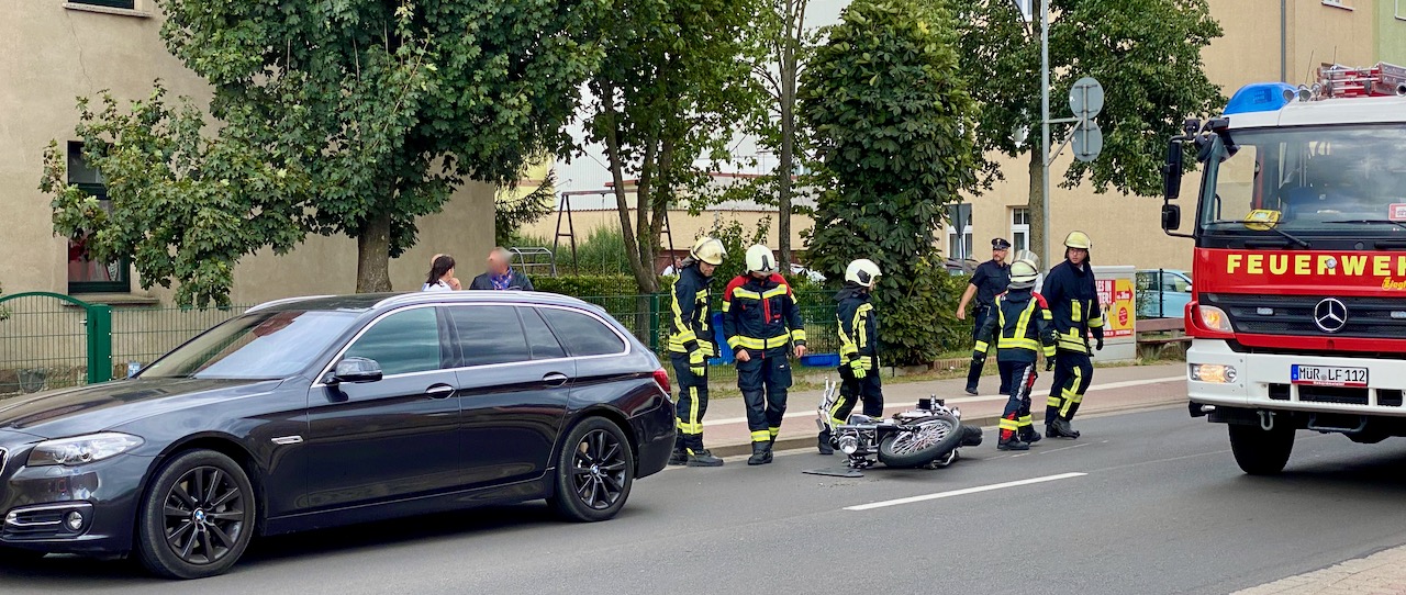 In der Warener Mozartstraße ist gestern Nachmittag ein Motorrad auf einen Pkw aufgefahren. Dabei erlitt der Motorradfahrer leichte Verletzungen und wurde zur Behandlung ins Müritz-Kinikum gebracht. Den entstandenen Schaden beziffert die Polizei auf rund 3000 Euro. Da Betriebsstoffe ausgelaufen sind, mussten auch Warens Feuerwehrleute ausrücken.
