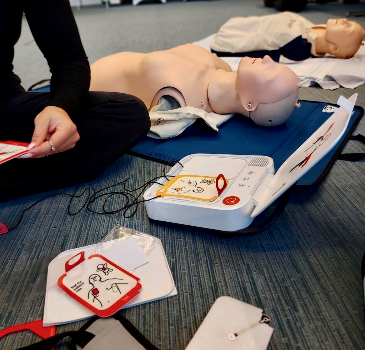 Unterstützt von Praxisanleitenden des Klinikums vermittelten die Auszubildenden unter anderem die Herz-Lungen-Wiederbelebung bei Säuglingen und Erwachsenen (inklusive Einsatz eines AED), die stabile Seitenlage, verschiedene Verbandstechniken sowie Maßnahmen bei Knochenbrüchen, Kopf- und Augenverletzungen. Auch das richtige Handeln beim Verschlucken wurde intensiv geübt.