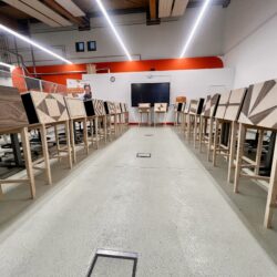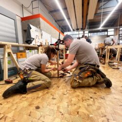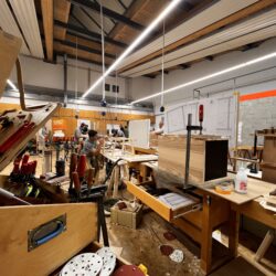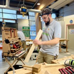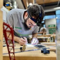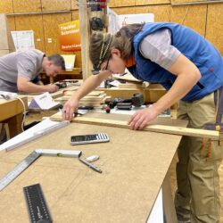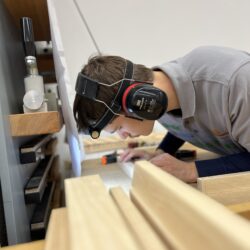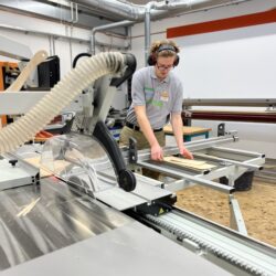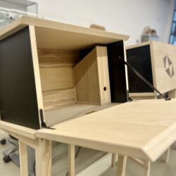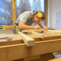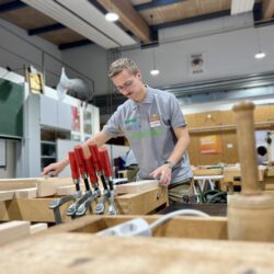 Was die jungen Fachkräfte leisteten, war in jeder Hinsicht beeindruckend: höchste Präzision, bemerkenswertes Zeitmanagement, enorme Konzentration und echtes handwerkliches Können. Alle Teilnehmer mussten eine „Schrägothek“ bauen, ein Designmöbelstück, das es in sich hatte. Genutzt werden kann es als eine Art Mini-Schreibtisch, aber eben mit einer besonderen Form.