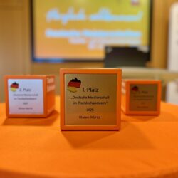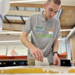 Für das RBB Müritz war es eine besondere Freude, einen eigenen Absolventen im Teilnehmerfeld begrüßen zu dürfen: Oscar Valentin Rehders aus Kröpelin, der im Sommer dieses Jahres seine Berufsausbildung im Tischlerhandwerk am RBB Müritz erfolgreich abgeschlossen hat, vertrat Mecklenburg-Vorpommern bei den Deutschen Meisterschaften. Mit großem Engagement, sauberer handwerklicher Ausführung und spürbarer Leidenschaft für seinen Beruf zeigte Oscar Valentin eine beeindruckende Leistung und machte deutlich, wie viel Talent im Nachwuchs unseres Bundeslandes steckt.