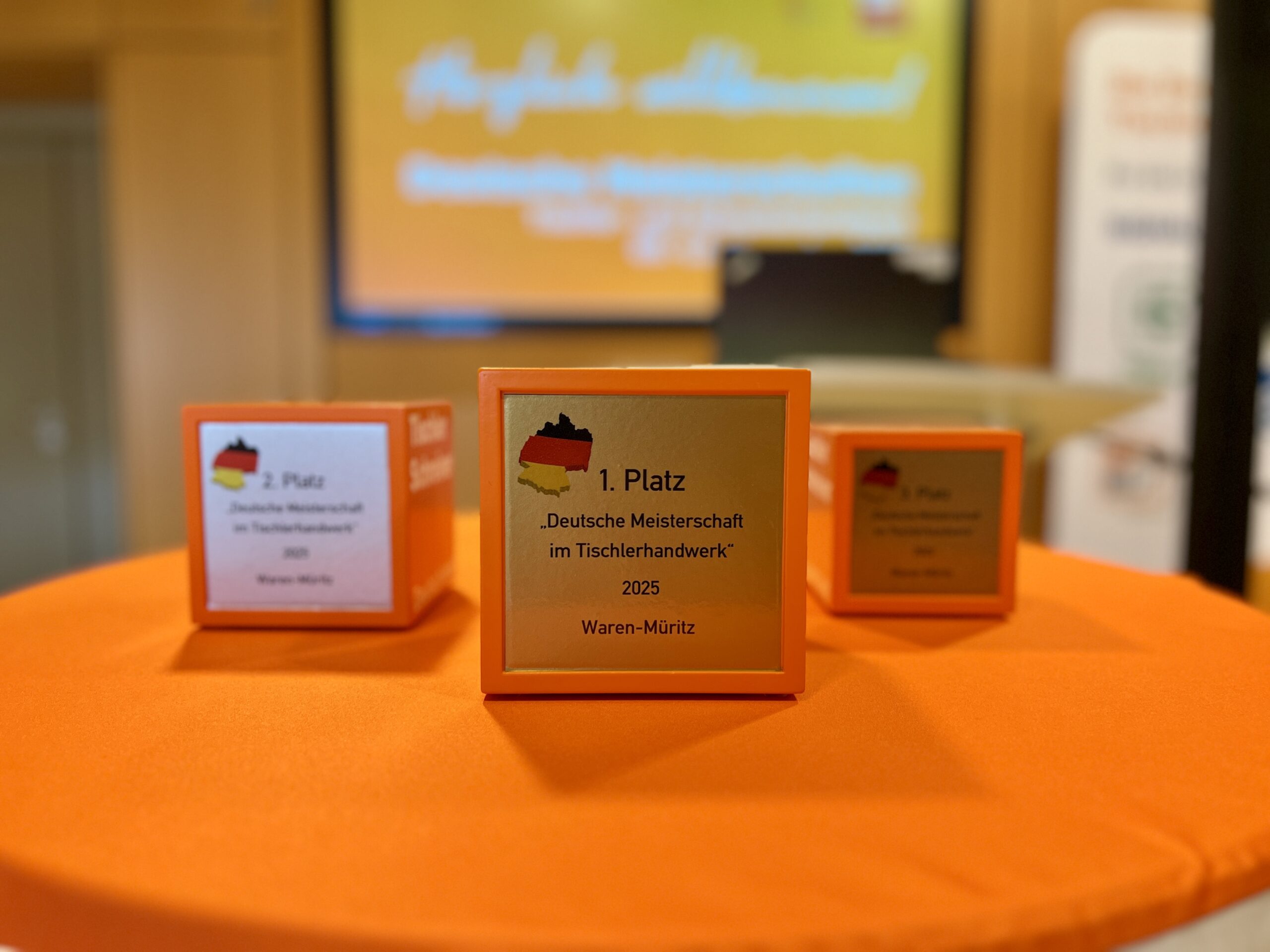 Erstmals fanden die Deutschen Meisterschaften im Tischler- und Schreinerhandwerk in Mecklenburg-Vorpommern statt – und das Regionale Berufliche Bildungszentrum Müritz (RBB Müritz) blickt mit großem Stolz auf drei eindrucksvolle Wettkampftage zurück. Das Kompetenzzentrum Holztechnik wurde zum bundesweiten Treffpunkt des jungen Spitzenhandwerks. Insgesamt 21 Teilnehmer aus allen Teilen Deutschlands – darunter Landessieger, Wildcard-Gewinner, internationale Gäste und ein Vertreter aus Mecklenburg-Vorpommern – stellten sich der anspruchsvollen Aufgabe, in 18 Stunden ein präzises Kleinmöbelstück zu fertigen.