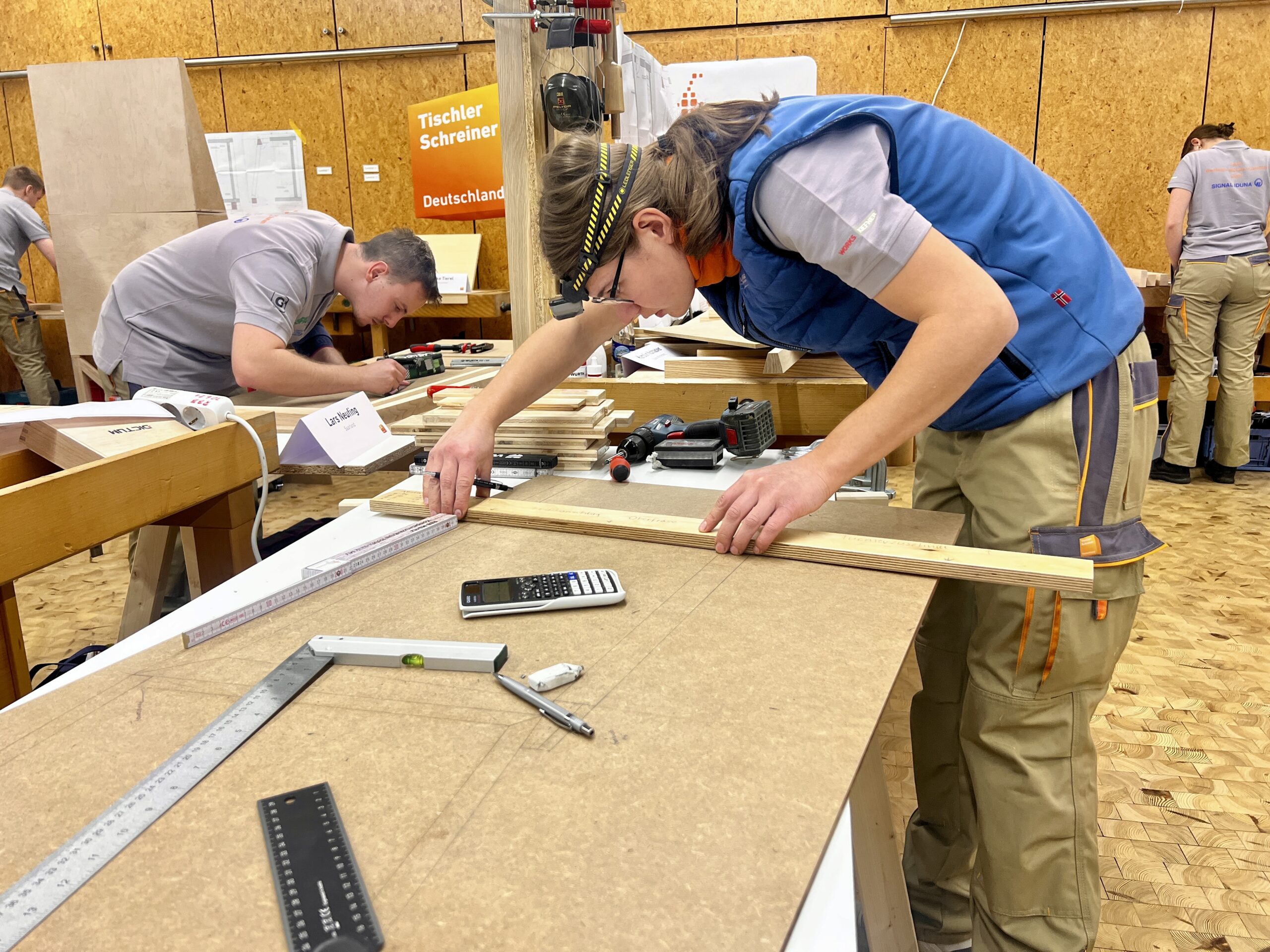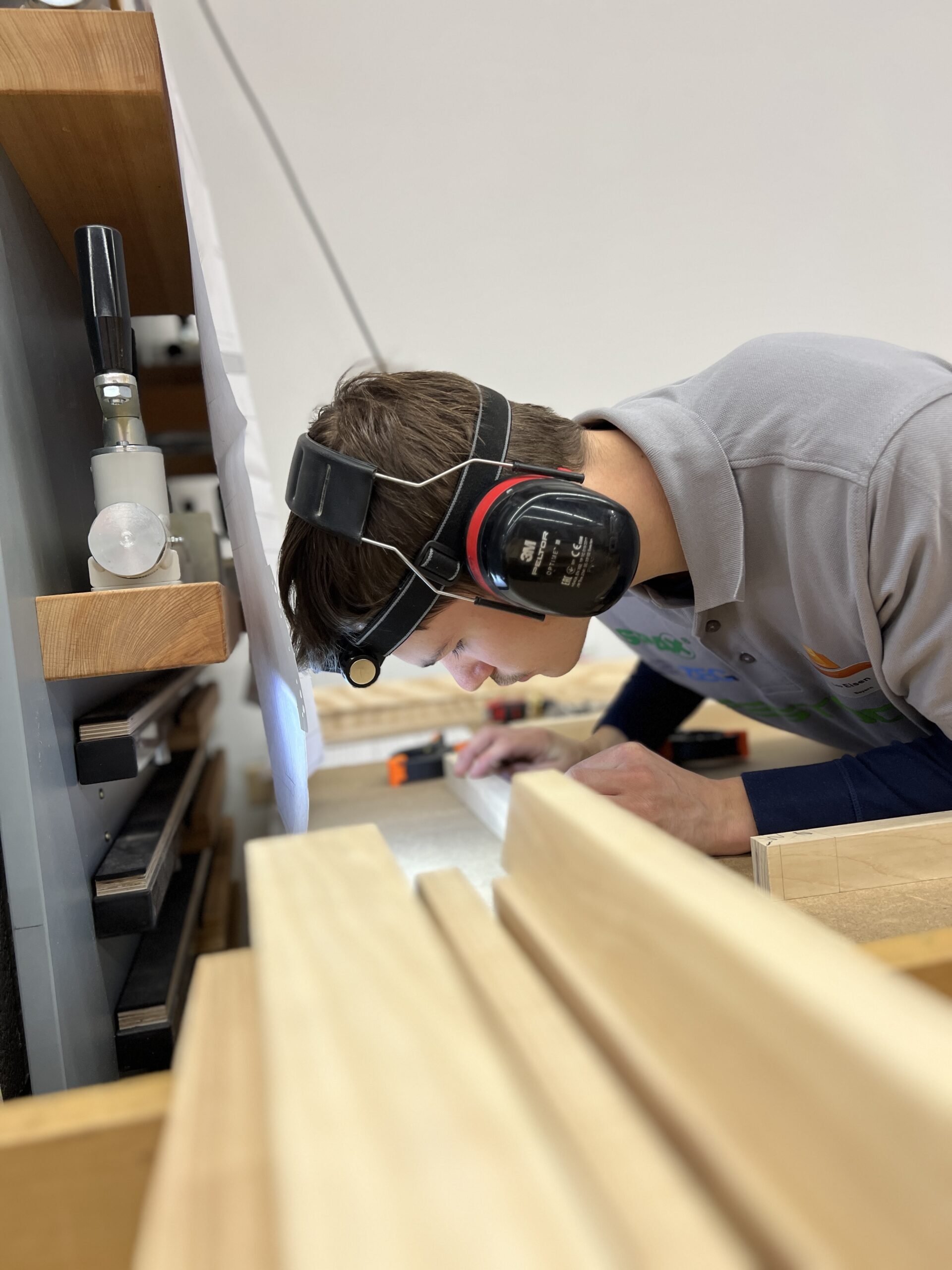 Für das RBB Müritz war es eine besondere Freude, einen eigenen Absolventen im Teilnehmerfeld begrüßen zu dürfen: Oscar Valentin Rehders aus Kröpelin, der im Sommer dieses Jahres seine Berufsausbildung im Tischlerhandwerk am RBB Müritz erfolgreich abgeschlossen hat, vertrat Mecklenburg-Vorpommern bei den Deutschen Meisterschaften. Mit großem Engagement, sauberer handwerklicher Ausführung und spürbarer Leidenschaft für seinen Beruf zeigte Oscar Valentin eine beeindruckende Leistung und machte deutlich, wie viel Talent im Nachwuchs unseres Bundeslandes steckt.
