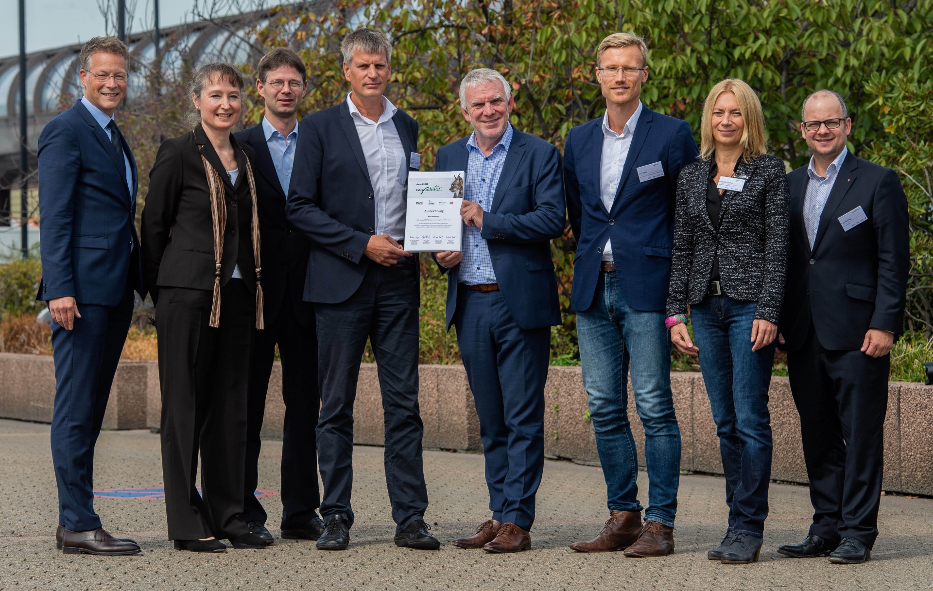 Die Urkunde für den 2. Preis Fahrziel Natur-Award 2018 nahmen im Namen aller Akteure Bert Balke, Geschäftsführer vom Tourismusverband Mecklenburgische Seenplatte und Ingo Dann, Bauamtsleiter der Stadt Waren(Müritz) mit Freude entgegen.