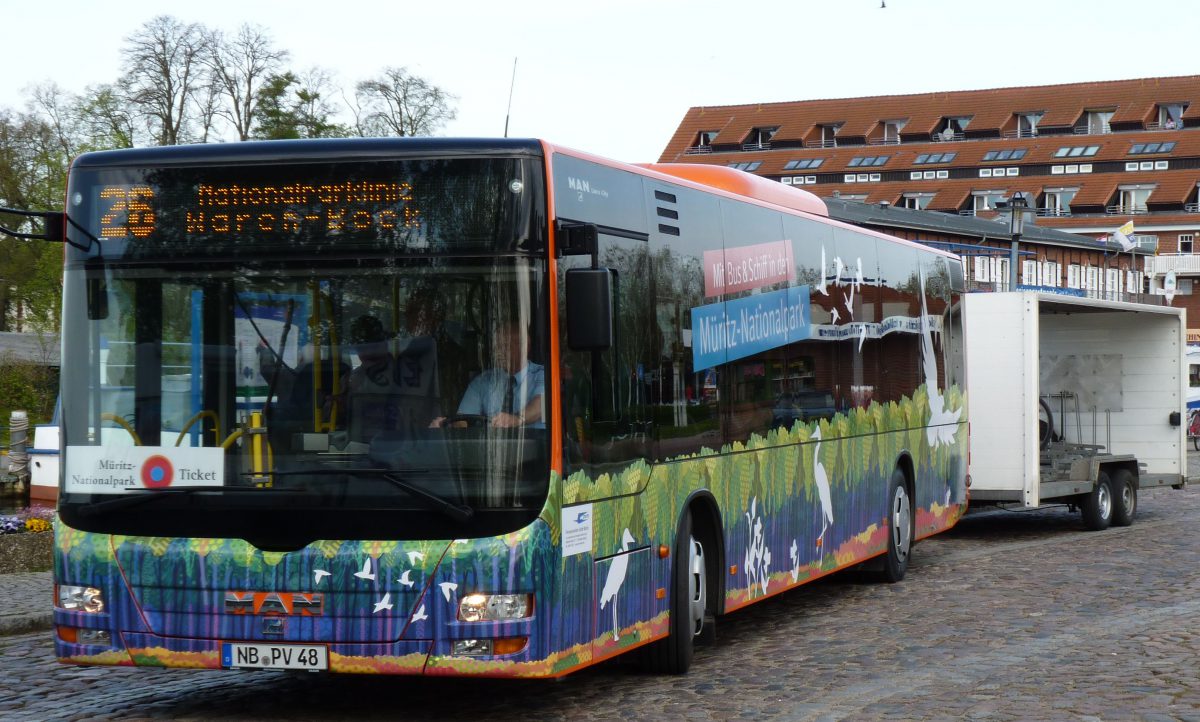 um Mobilitätsangebot kommen attraktiv aufbereitete Informationen wie der neu gestaltete ÖPNV-Netzplan, Faltblätter und die Internetseite www.mueritz-rundum.de hinzu. Mit der Auszeichnung zollten die Preisverleiher der engen Zusammenarbeit zwischen Nationalparkamt Müritz, Tourismusverband Mecklenburgische Seenplatte, Kommunen, Landkreis und Mecklenburg-Vorpommerscher Verkehrsgesellschaft ihren Respekt.
