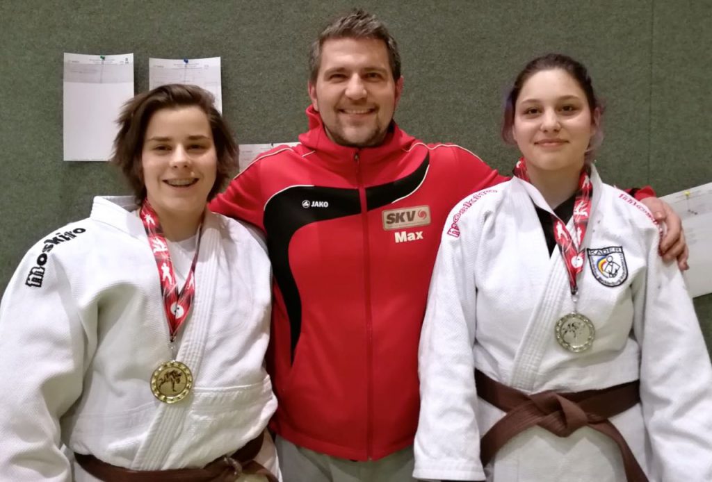 Foto: Lena und Cora mit ihrem Trainer Maximilian Mayer