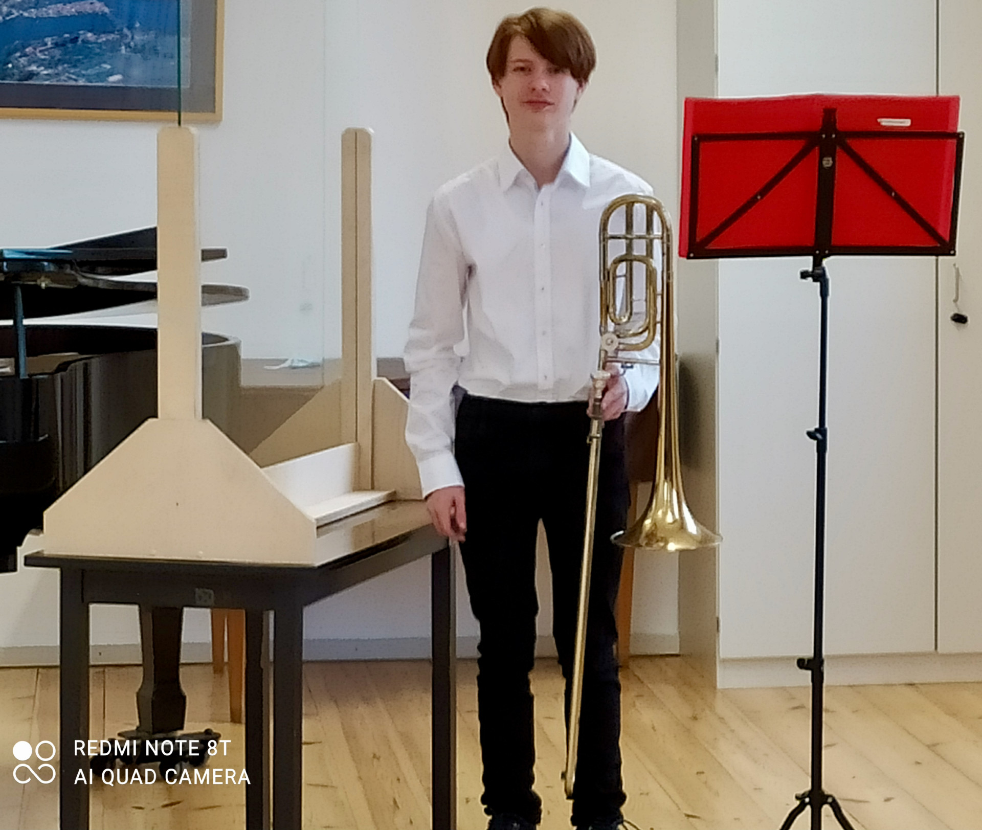 - Elias Koreschuk , Posaune, Altersgruppe III, 22 Punkte, 2. Preis (Foto unten)