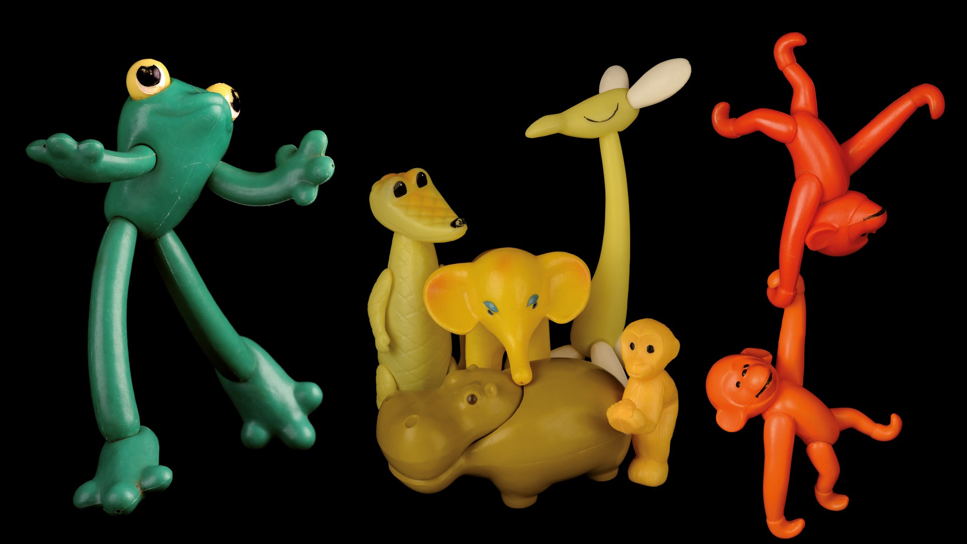 Neben Tieren aus Zelluloid, Polyetylen und Gummi werden auch handgefertigte Entwurfsmodelle für Spielzeugtiere präsentiert. Viele Objekte lassen sich konkreten Künstlern zuordnen, die mit ihrer Biographie in der Ausstellung vorgestellt werden. Zu den Objekten und Informationstafeln kommen großformatige Fotografien einzelner Spielfiguren und Figurengruppen, die die gestalterische Qualität dieser Industrieprodukte augenscheinlich machen.