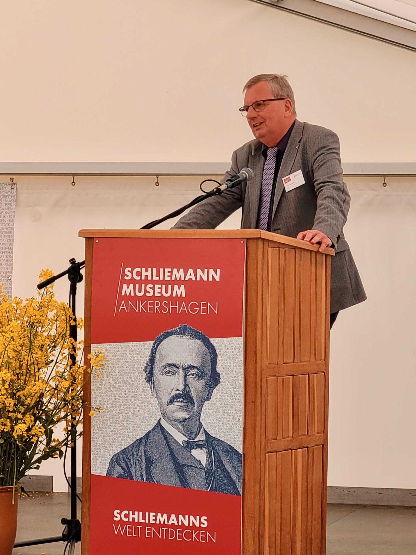 Die Aufführung der Theatergruppe des Carolinums Neustrelitz mit dem Stück „Schliemanns Traum“, Grußworte von Sabine K. Lauffer, Geschäftsführerin MuSeEn gGmbH und WMSE GmbH, Thomas Müller, 2. stellvertretender Landrat, Dr. Reinhard Witte, Vorsitzender der Schliemann-Gesellschaft, Thomas Will, Bürgermeister der Gemeinde Ankershagen sowie der Festvortrag von Professor Dr. Matthias Wemhoff, „Heinrich Schliemann – eine Wiederannäherung“, der die aktuelle Diskussion um Heinrich Schliemann aufgriff und ihn den Kontext seiner Zeit einordnete, bildeten weitere Programmpunkte.