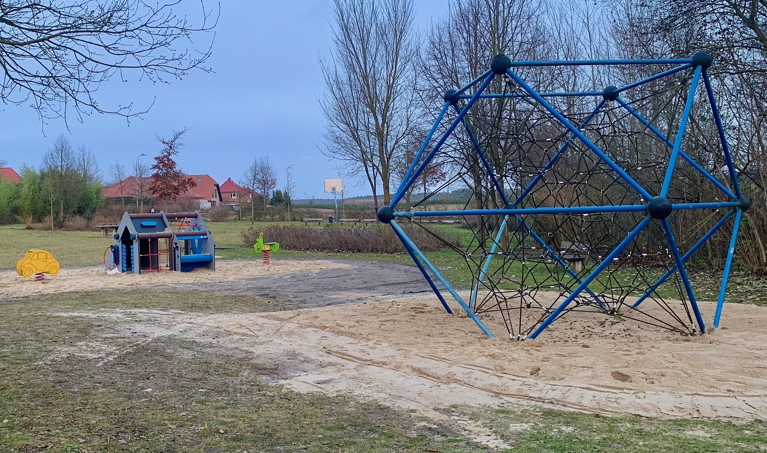 Wenn ich das auf dem Bild so sehe, ist das Klettergerüst mit den Seilen ja noch Altbestand und musste daher nicht neu angeschafft werden. Auch die Bänke und die Tischtennisplatte haben ihre besten Zeiten bereits hinter sich.
