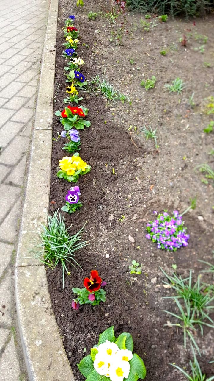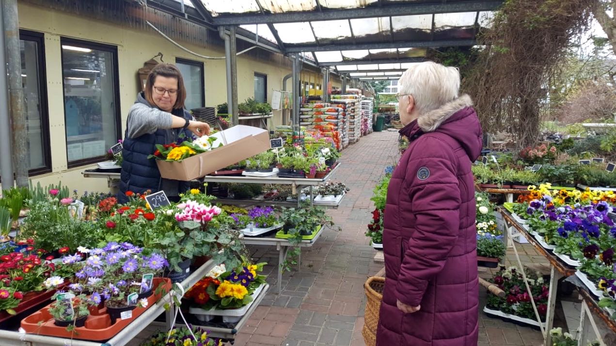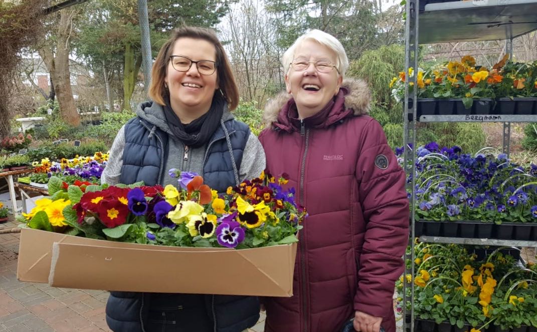 Claudia Bergmann hat Wort gehalten und die 77-jährige Christa Ortmann aus der Carl-Moltmann-Straße konnte von ihr die Stiefmütterchen in Empfang nehmen und hat sie auch bereits eingepflanzt.