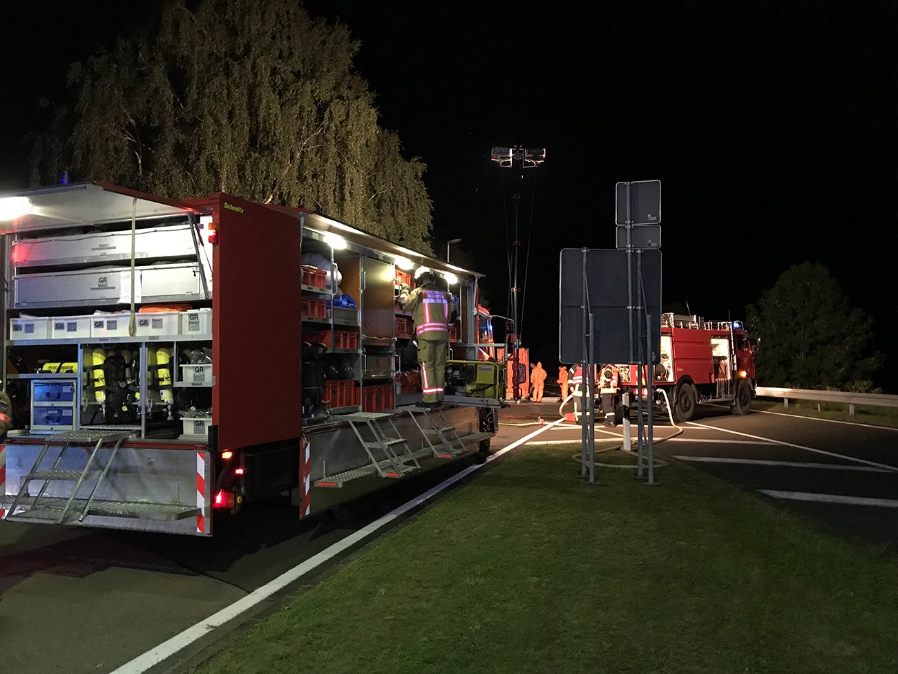Der Einsatz der Gefahrguteinheiten dauerte fast 24 Stunden lang. Die Autobahn war in beiden Richtungen voll gesperrt.
