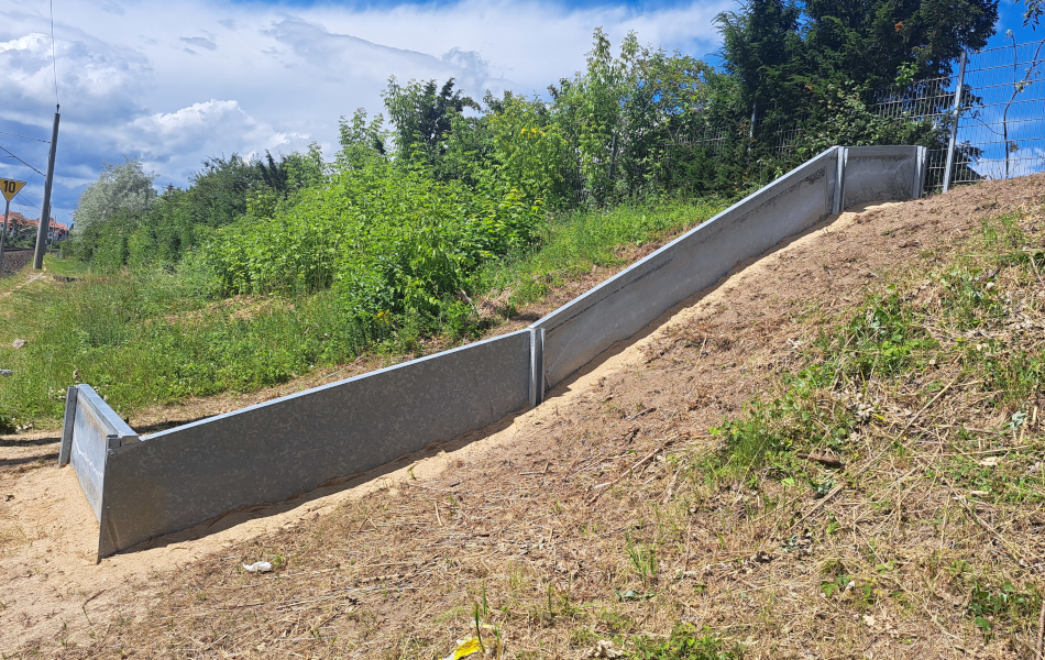 Foto unten: Vor Baubeginn ist im Juni ein Reptilienschutzzaun errichtet worden.