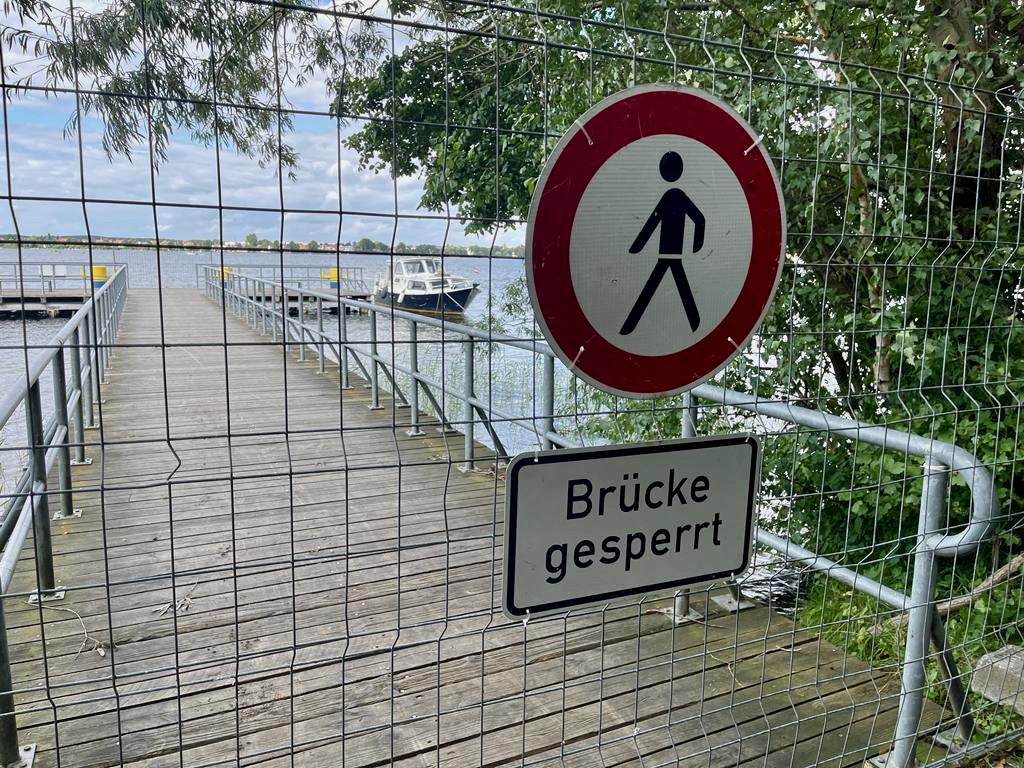 Die Stadt Waren scheint ein Brückenproblem zu haben: Nach dem Feisneck-Steg hat jetzt die nächste Brücke schlapp gemacht. Dieses Mal handelt es sich sogar um einen Schiffsanleger, und zwar den in Ecktannen. Den hat die Stadt gestern komplett gesperrt.