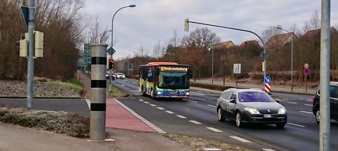 Doch das allein reicht noch nicht: In den letzten Tagen konnten sich Kraftfahrer auch darauf einrichten, dass an der nächsten B192-Kreuzung kurz vor der Hochschule, etwa 300 Meter hinter der neuen Blitzersäule an der Y-Kreuzung, schon das nächste mobile Messgerät stand.