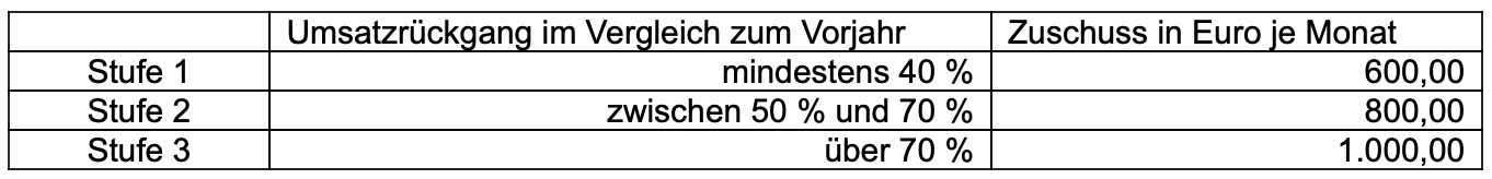 Zuschusshöhe je Monat (Förderzeitraum Januar 2021 bis Mai 2021)