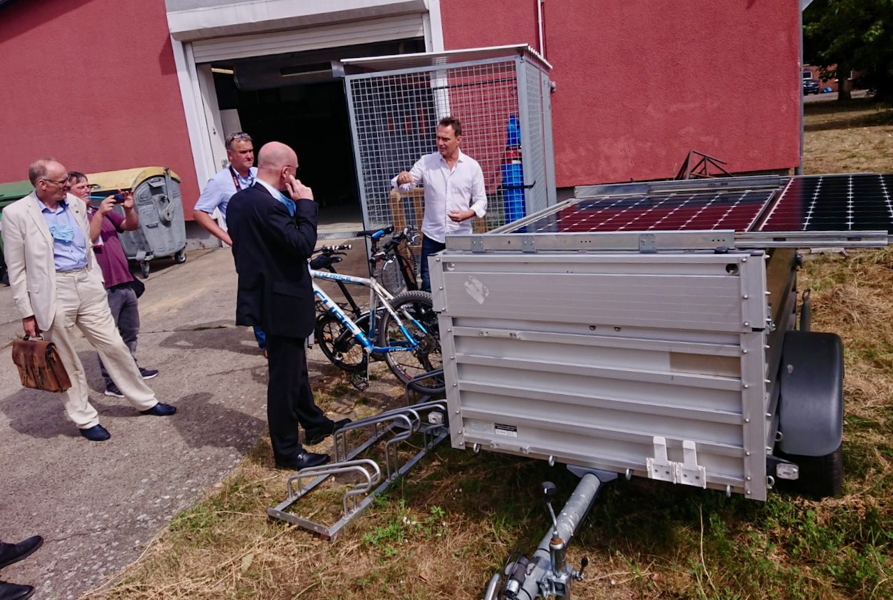 Fehlt einem Handyanbieter der Strom an einem Masten oder der Bahn die Energie, um ihre Warnblinkanlage an einem Bahnübergang zu betreiben, dann kommt die Neubrandenburger Firma Sunfire Fuel Cells GmbH ins Spiel. Auch bei der Stromversorgung einer Basisstation für Bergsteiger am Mount Everest waren die Neubrandenburger schon technisch dabei, erzählt der Firmenchef. Das Unternehmen vermietet Generatoren, die auf Basis von Flüssiggas Strom erzeugen. Und wenn die Anlage auf einem Autoanhänger montiert ist – wie in Neubrandenburg – kann oben auch noch eine Solaranlage für Strom sorgen.