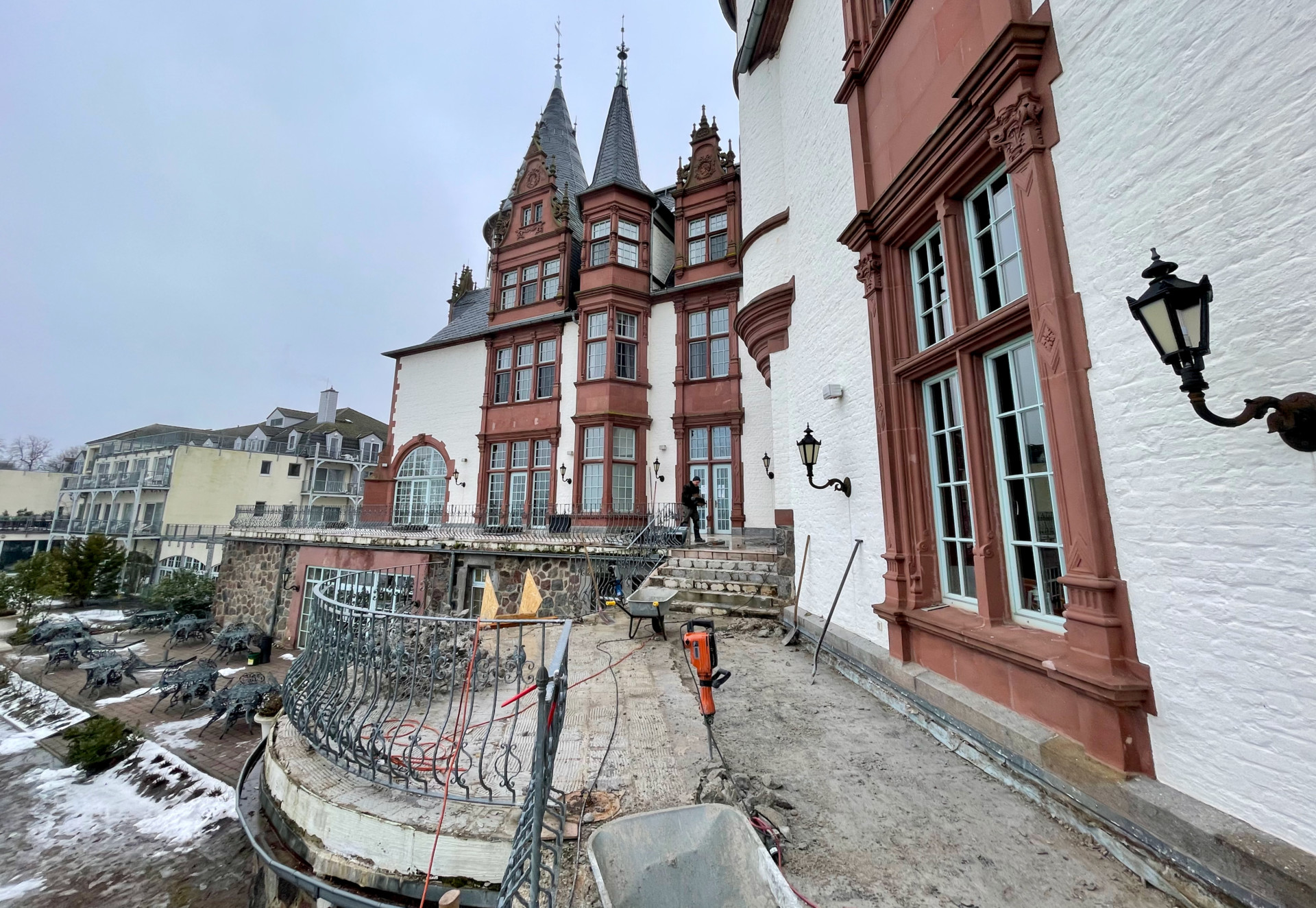 „Neben den Fußböden in allen Bereichen und Zimmern sowie der frischen Farbe und stilvollen Tapeten wird auch der Wellnessbereich in Angriff genommen. Denn der spielt bei den Gästen eine immer größere Rolle. „Bei vielen Arbeiten helfen auch unsere eigenen Mitarbeiter, die deshalb nicht zu Hause sitzen müssen und sich auch freuen, etwas tun zu können“, berichtet Direktor Reincke. Und nicht nur die eigenen Mitarbeiter freuen sich über die Schloss-Baustelle, auch alle anderen Handwerker. Denn sie bekommen jeden Mittag frisch gekochtes Essen. Ebenfalls eine Idee des neuen Hausherren.