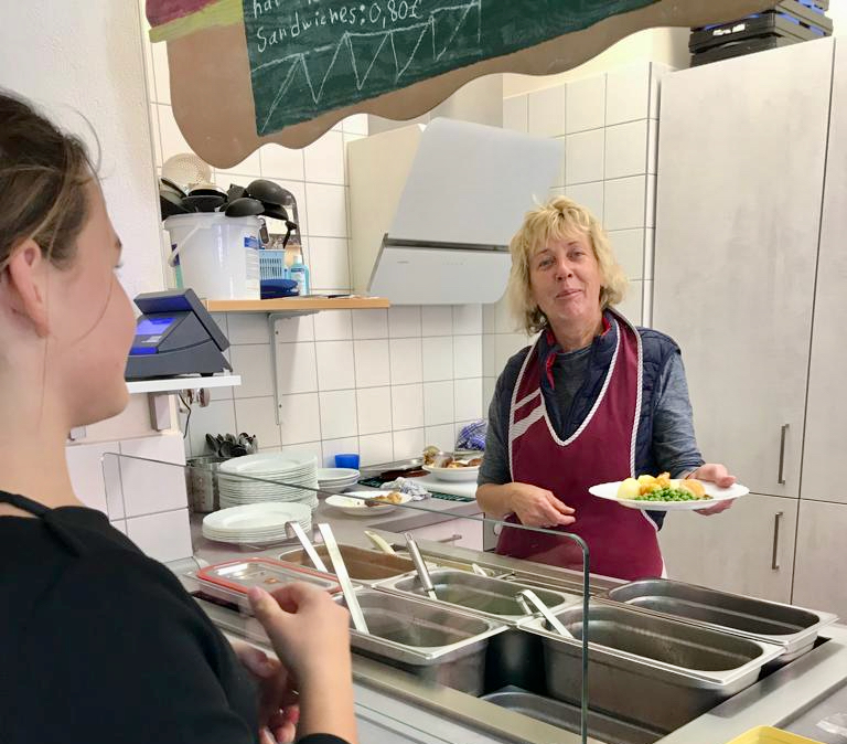 Seit August ist das Lebenshilfswerk ein verlässlicher Partner was die Qualität und die Vielfältigkeit der verschiedenen Speisen betreffen. Bereits seit mehreren Jahren sind wir im ständigen Kontakt mit dem Lebenshilfswerk, um unseren Schülern ein gesundes, zertifiziertes Speisenangebot anzubieten“, so Schulleiterin Manuela Bielke, „Weiterhin war es uns eine Herzensangelegenheit, dass wir das Essen mit einem ‚grünen Fußabdruck‘ versehen, denn von der Produktionsküche zur Essenausgabe der Schule sind es gerade einmal sieben Minuten Fahrzeit bzw. 3,5 km – frischer und regionaler geht es nicht.“