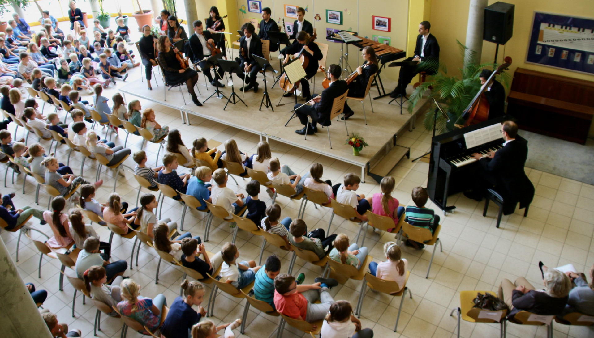 Eine besondere Überraschung gab es heute für die Mädchen und Jungen der Grundschule Am Papenberg. 15 Musiker der Neuen Philharmonie spielten den „Karneval der Tiere“ von Camille Saint-Saens. Die Geschichte wurde den Kindern dabei durch eine Moderatorin anschaulich vermittelt.