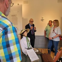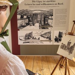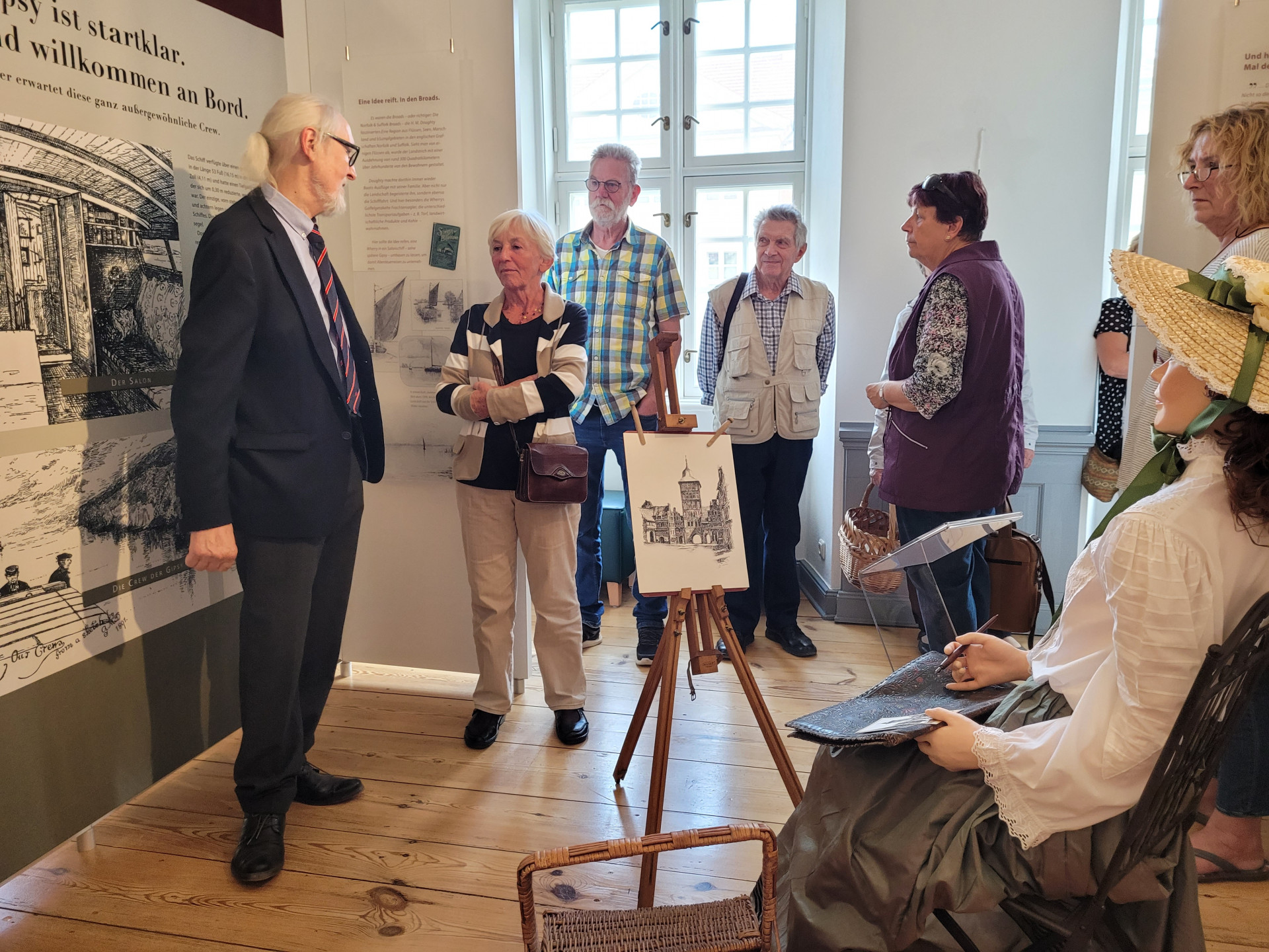 Eine neue Sonderausstellung ist in dieser Woche im 3 Königinnen Palais auf der Mirower Schlossinsel eröffnet worden. Unter dem Titel „1890. Leinen los – Mr. Doughty legt ab“ erzählt die „etwas andere“ maritime Sonderausstellung von dem Segel-Abenteuer des H.M. Doughty, das ab Friesland via Mecklenburg nach Böhmen führt. Konzipiert und für das 3 Königinnen Palais umgesetzt wurde die Sonderausstellung von Jürgen Hagenkötter und in Zusammenarbeit mit seiner Lebensgefährtin Verena Lübbert kuratiert. Zur Eröffnung fanden sich vor allem Interessenten aus der Region ein, die sich während der inhaltlichen Vorstellung rege mit Jürgen Hagenkötter zu Detailfragen und Besonderheiten rund um das Segel-Abenteuer austauschten.