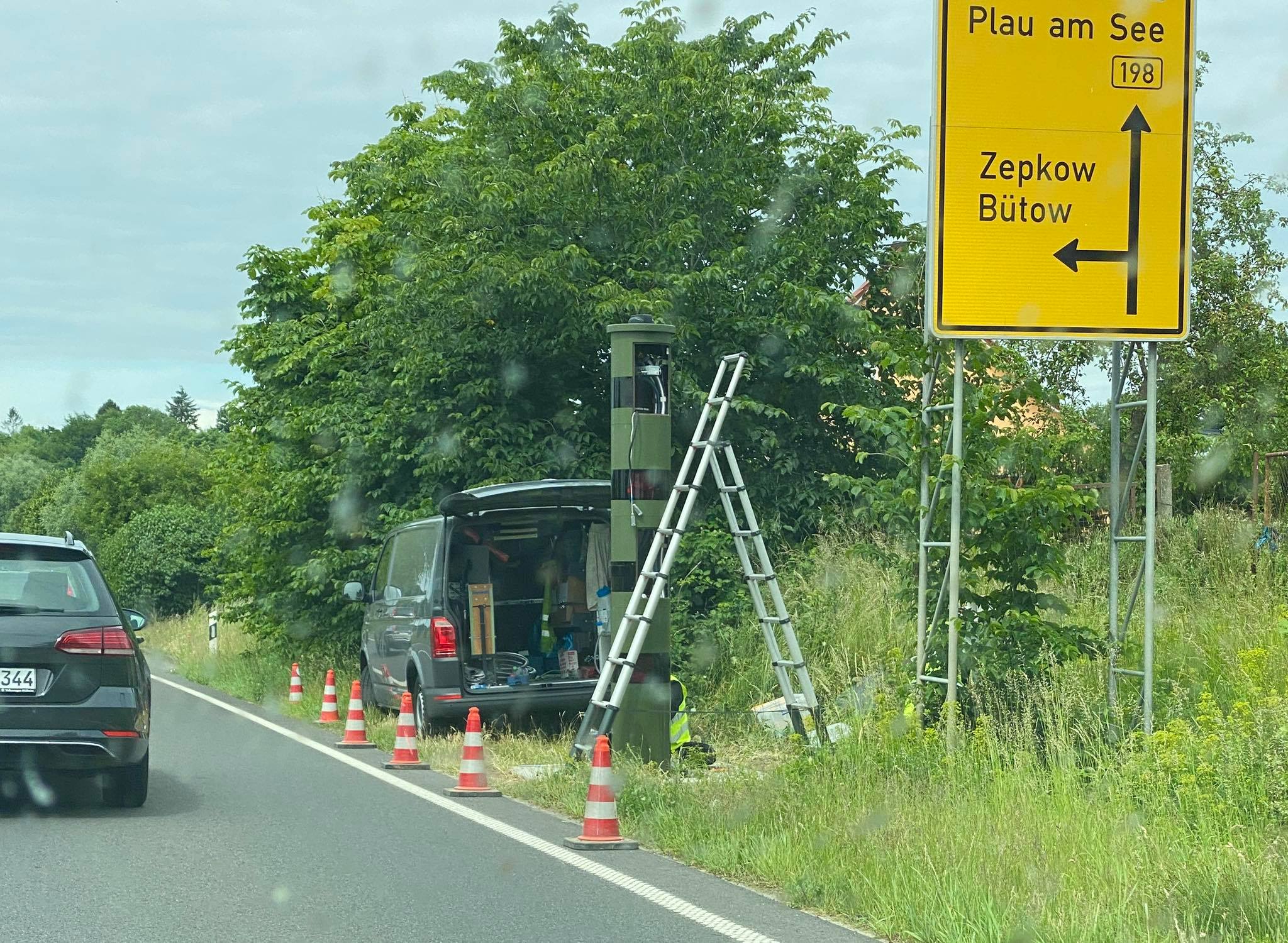 Auf der Bundesstraße 198 in der Ortslage Dambeck bei Röbel hat der Landkreis Mecklenburgische-Seenplatte heute einen neuen Blitzer installiert. Das neue System löst damit den inzwischen in die Jahre gekommenen Blitzer ab. Das neue Gerät hat nun eine grüne Farbe und kann offenbar gleichzeitig in beide Fahrtrichtungen messen.