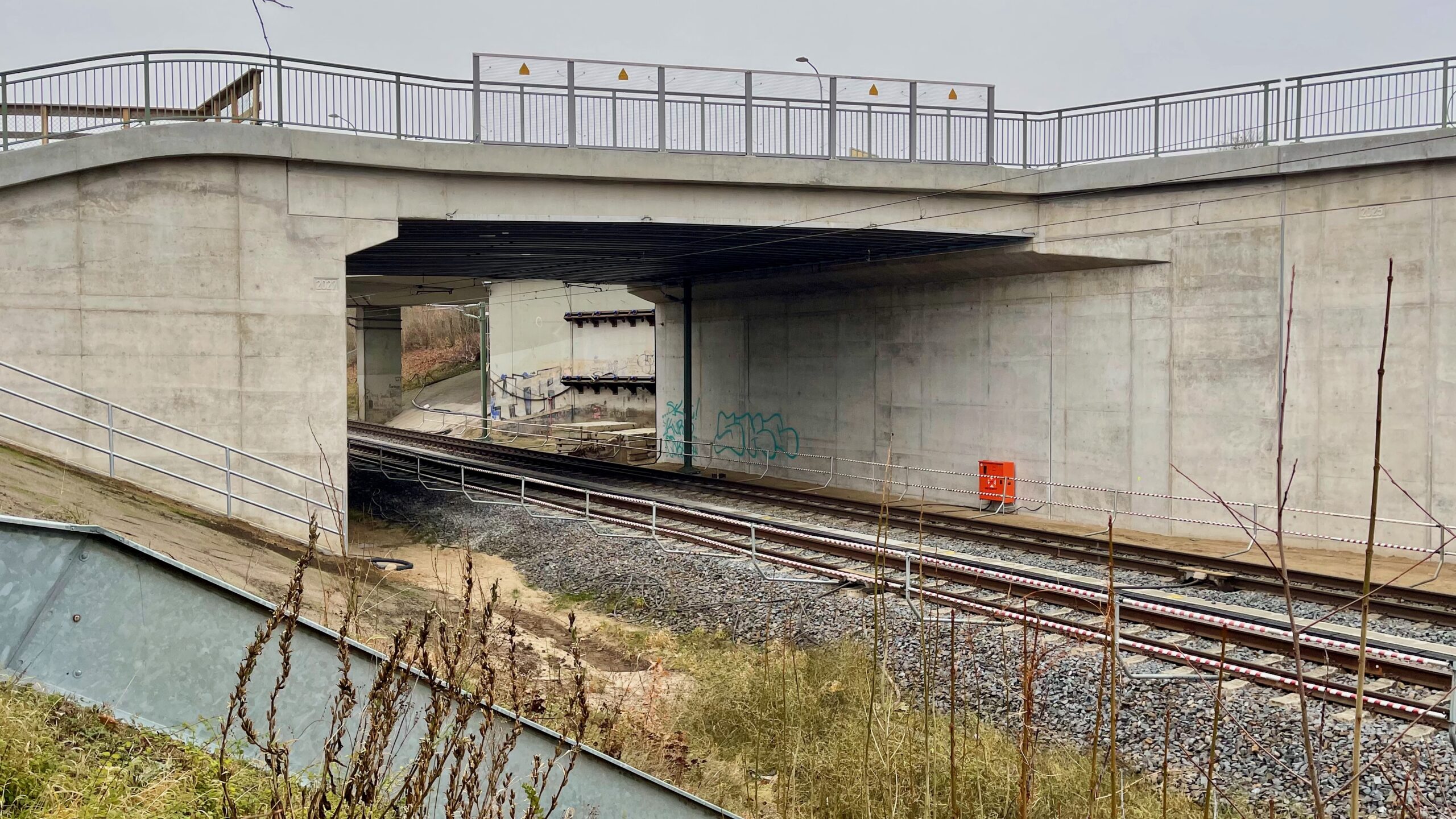 Im Januar des kommenden Jahres werden die Arbeiten auf der Baustelle aus bautechnologischen Gründen weitestgehend ruhen, bevor im Februar die Baufeldfreimachung für die Arbeiten am Südzug beginnen.