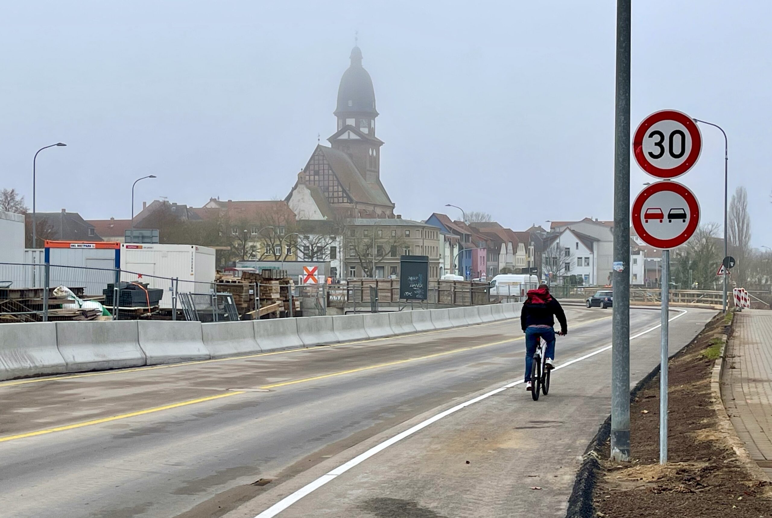 Mit der Verkehrsfreigabe wird der Südzug der Bestandsbrücke vollständig gesperrt – sowohl für den Fuß- und Radverkehr als auch für Fahrzeuge. Ein Abbiegen in die Eichholzstraße ist dann ebenfalls nicht mehr möglich. Die Zufahrt zur Mecklenburger Straße bleibt offen und die 12 t-Beschilderung kann erst am Montag, 15. Dezember, vollständig zurückgebaut werden.