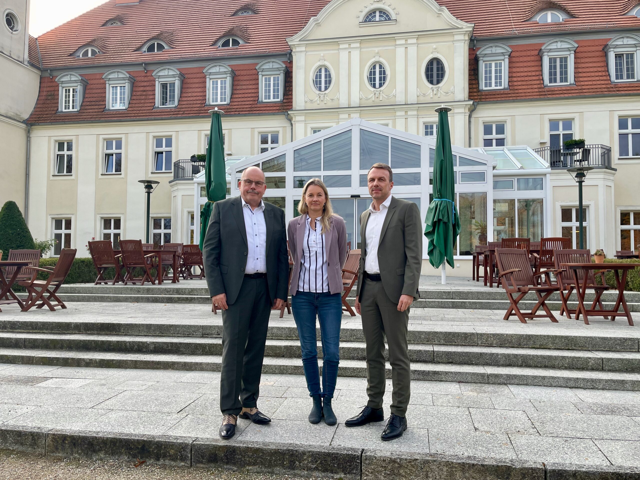 Foto: Die Geschäftsführer Michael Scharf (links) und Mario Reincke sowie Prokuristin Katrin Weißkopf-Mäbert sind stolz auf die Erfolgsgeschichte am Fleesensee und schauen trotzt aller Hürden zuversichtlich in die Zukunft.